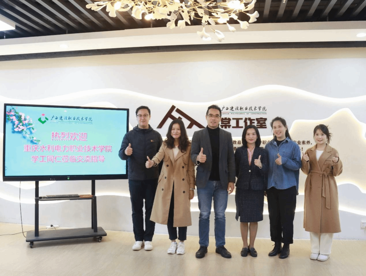 双方在海棠工作室进行座谈交流。杨海基副部长、郭海棠副书记对重庆水利电力职业技术学院“红色青年”工作室侯晓玲老师一行的到来表示热烈欢迎,并介绍了乐鱼全球最大体育平台_乐鱼(中国)辅导员工作室建设情况。2021年,学校出台《乐鱼全球最大体育平台_乐鱼(中国)辅导员工作室管理办法》,以辅导员工作室建设为抓手,为辅导员团体职业化专业化专家化发展铺路搭台。目前,学校已分三批建成8个特色鲜明的校级辅导员工作室,其中海棠工作室、知行工作室获批为第一批广西高校高水平辅导员工作室。