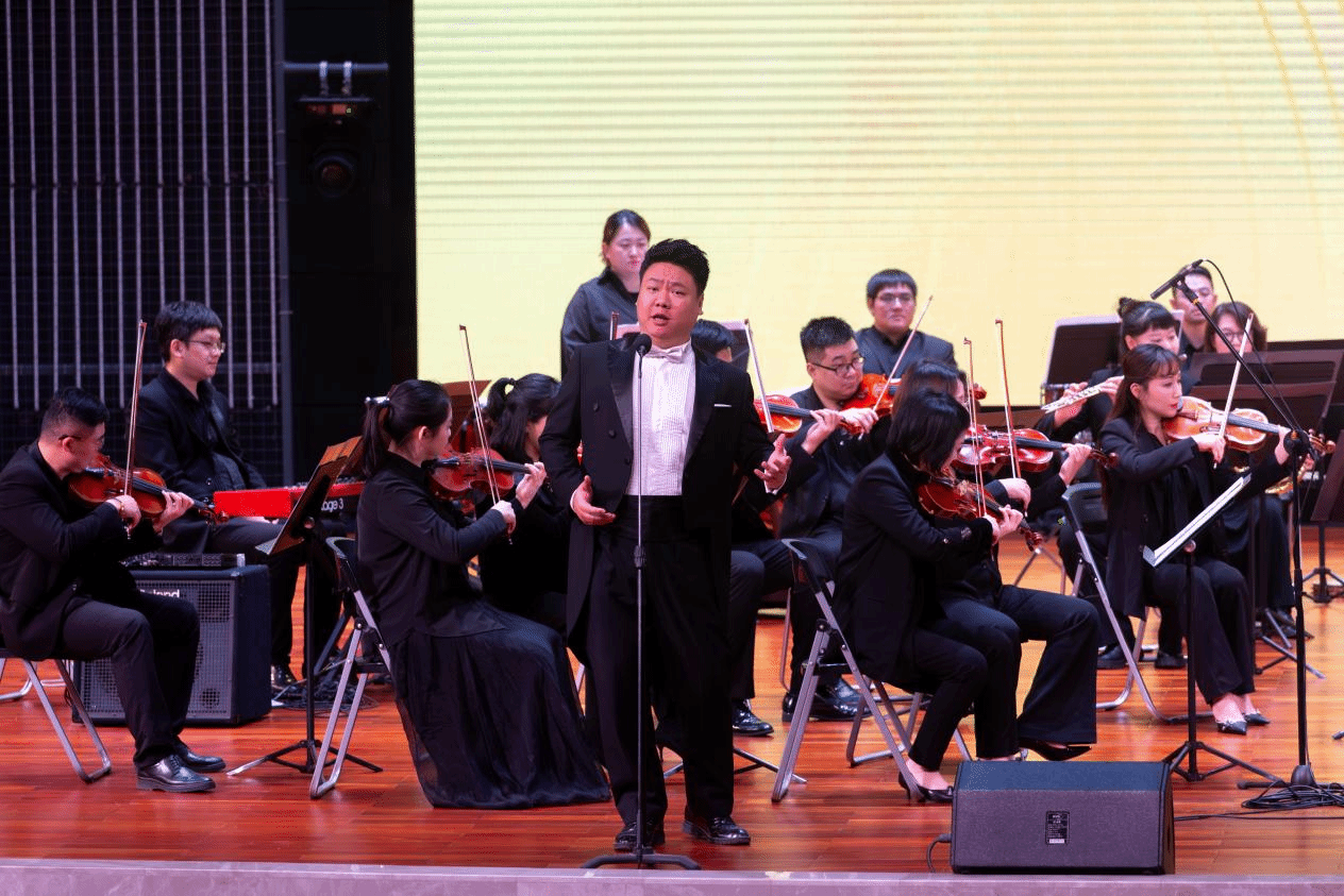 交响音乐会上,艺术家们以精湛的技艺和饱满的热情,呈现了一场视觉与听觉的双重盛宴。一首《卡门序曲》拉开序幕,曲风欢快热辣,节奏自由,充满活力。师生们依次欣赏到《乡村骑士序曲》《第二圆舞曲》《C大调弦乐小夜曲》等多首名曲。现场还设置了互动环节,乐团指挥向师生们讲解了交响乐中各个声部,并展示了各自声部的音乐特性,还特意邀请了一位观众化身“特约指挥”,与乐团们现场互动。曲终,礼堂气氛热烈,师生们掌声不断。
