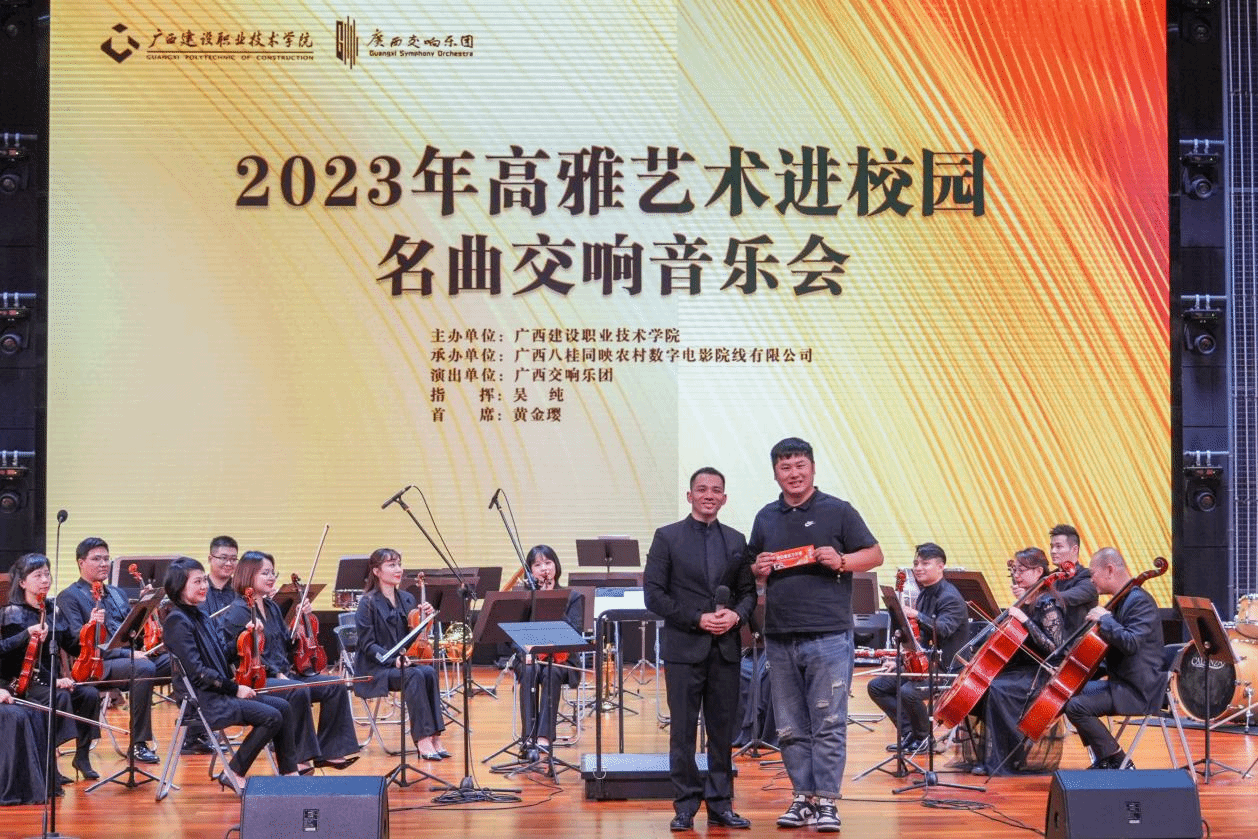 广西建院12月8日讯(记者团 文/石青平 图/杨贵维)12月7日晚,乐鱼全球最大体育平台_乐鱼(中国)在礼堂举行2023年高雅艺术进校园之名曲交响音乐会。