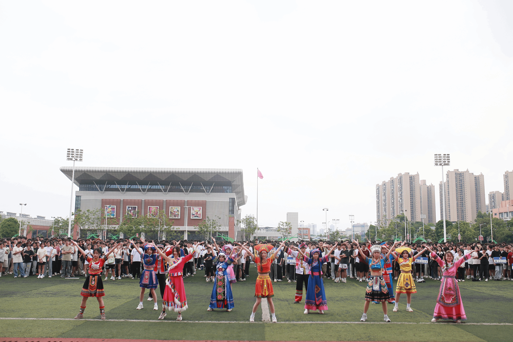 据悉,本届民族运动会共设大象拔河、三人板鞋竞速、背篓绣球、飞盘、同心协力鼓、毽球、跳大绳、高脚马8个民族传统体育运动项目,吸引了52个团体、2300多名学生报名参加。