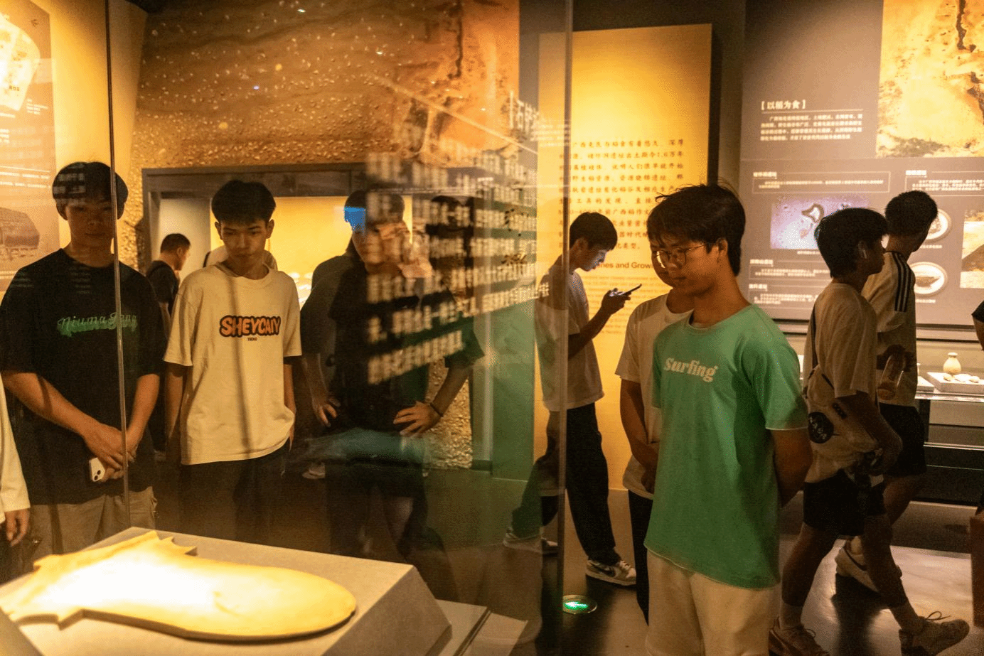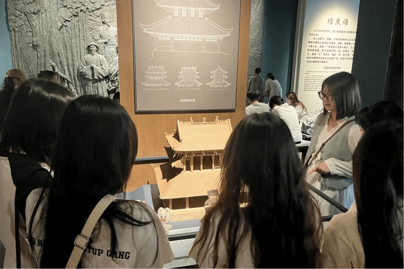 艺术设计学院学生认真听广西博物馆讲解员讲解