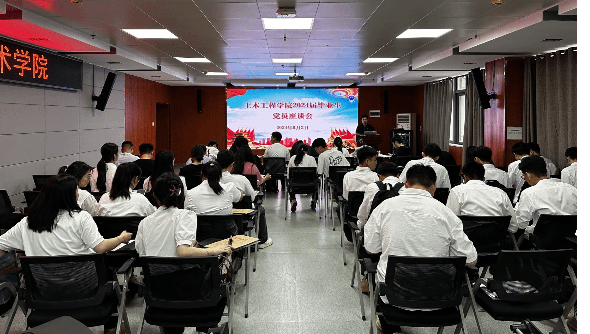广西建院6月27日讯(土木工程学院讯 文/石明成 图/朱运基 陈乃锦)为进一步加强毕业生思想政治教育,强化毕业生理想信念,厚植爱党爱国爱校情怀,近日,土木工程学院开展“爱国奋斗,爱校荣校”毕业季系列主题教育活动。