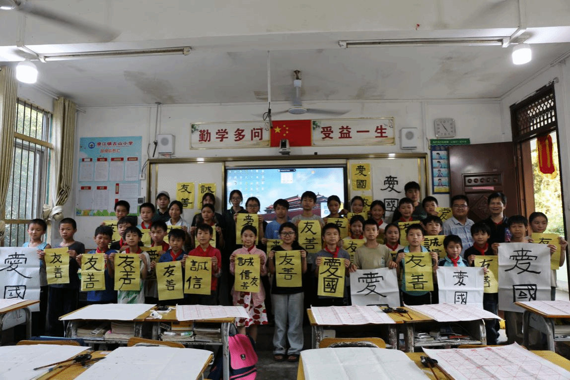 为帮助乡村小学生说好普通话,写好规范字,提升文化素养,助力乡村文化振兴,学校语言文字工作委员会组建大学生推普实践团队继续深入帮扶的自成村古山小学开展主题为“大手拉小手 推普筑未来”的推普实践活动,通过“普通话桥梁”公益课堂和“墨香传承”书法公益课堂的形式,推广普及国家通用语言文字。
