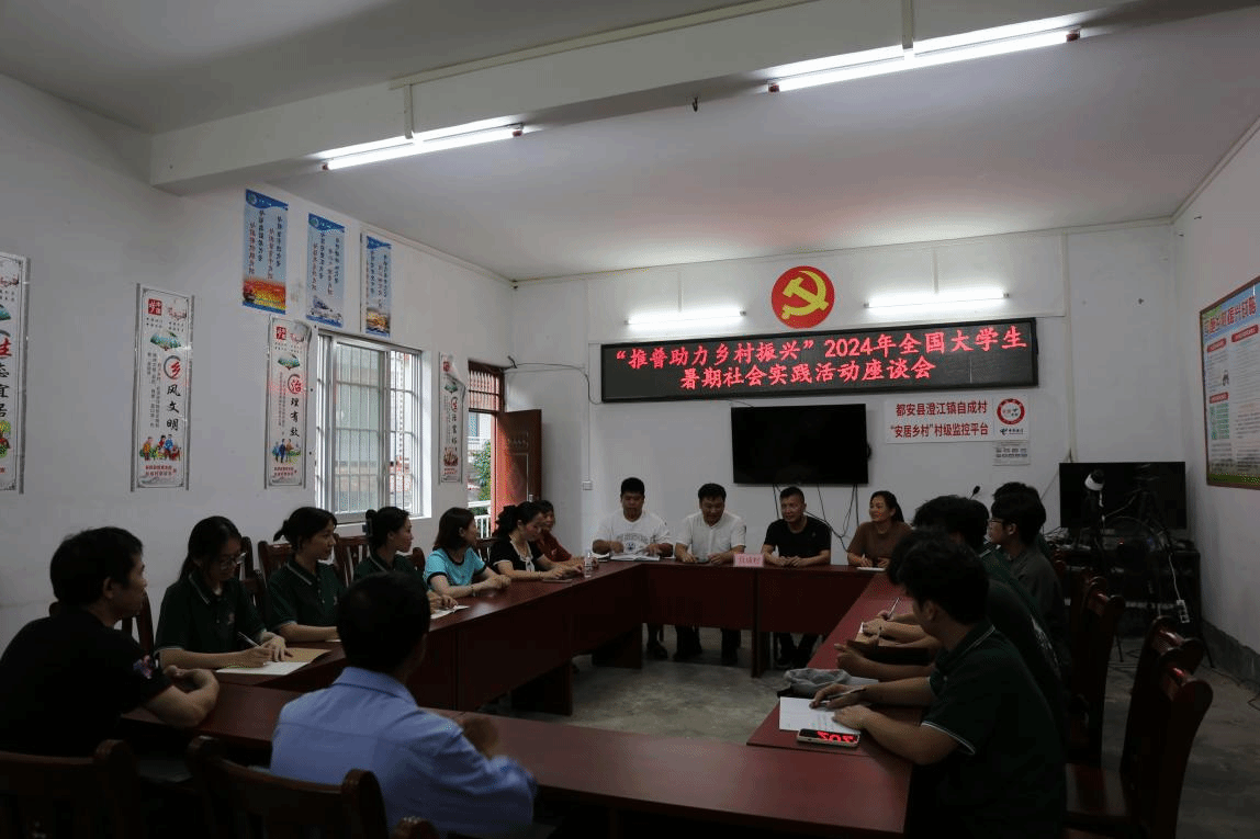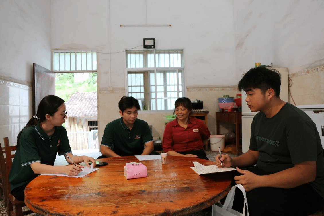 活动期间,实践团成员还深入自成村及都安县仙琅社区进行推普实情调研,通过座谈会、入户采访、发放调查问卷等方式了解当地的社会经济发展状况、国家通用语言文字普及程度、推广质量情况及当地的语言服务需求,同时与驻村第一书记、村委干部共同探讨了如何结合当地实际更好地开展语言文字推广方案,为下一步持续深入开展“推普助力乡村振兴”活动提供了思路。
