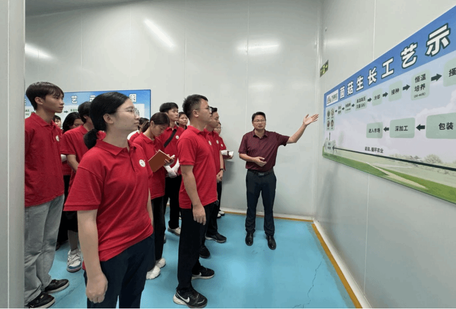 7月16日,实践团前往都安县大兴镇食用菌生产企业——广西万雨生物科技有限公司进行走访调研。企业负责人介绍了人工智能技术在食用菌种植生产过程中的应用场景,如生产的智能化管理、菌种的温度检测等。从菌种培育到产品包装,AI技术的应用不仅提高了生产效率,还保证了产品质量。
