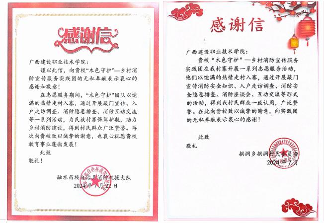 实践团队通过唱民歌、喊消防标语、消防知识问答等形式多样的活动,将消防知识传递给每一位村民,用实际行动和真挚的情感感染苗寨群众。本次志愿活动得到苗寨乡亲们的一致认可,获得了来自县、镇、乡、村的多封感谢信。