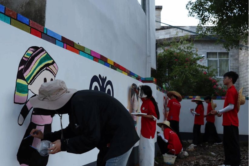 实践团成员正在进行墙绘