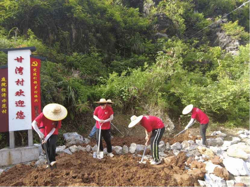 实践团以“践行‘两山’理念 聚焦‘双碳’目标”为主题,因地制宜、就地取材,着重打造“美丽村景”“美丽村道”“美丽庭院”“美丽田园”“美丽菜园”等“五美”示范景观,助推甘湾村发挥生态优势发展骑行旅游经济。在“五美”示范景观的打造中,实践团充分尊重村民意见,通过微改造这种“绣花”功夫,利用甘湾村丰富的山地资源和植物多样性特点,营造“山石造景,植物点睛”特色景观。