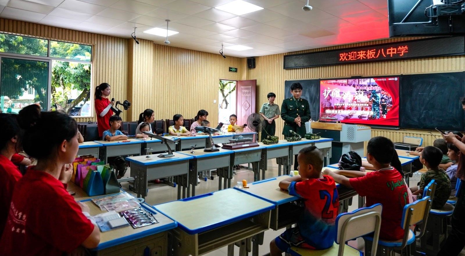 携手共建平安校,师生齐心强国安。实践团与板八中学建立了良好的情谊,在深入推进“大中小思政一体化”、信息化教学共享、平安安全校园建设等方面达成共识。实践团还赠送了用于校园安全建设的防爆器材,以实际行动支持边疆地区的平安建设。在该校师生的帮助下,实践团成员积极开展征兵宣传活动,鼓励适龄青年投身军营,为国家的国防事业贡献力量。