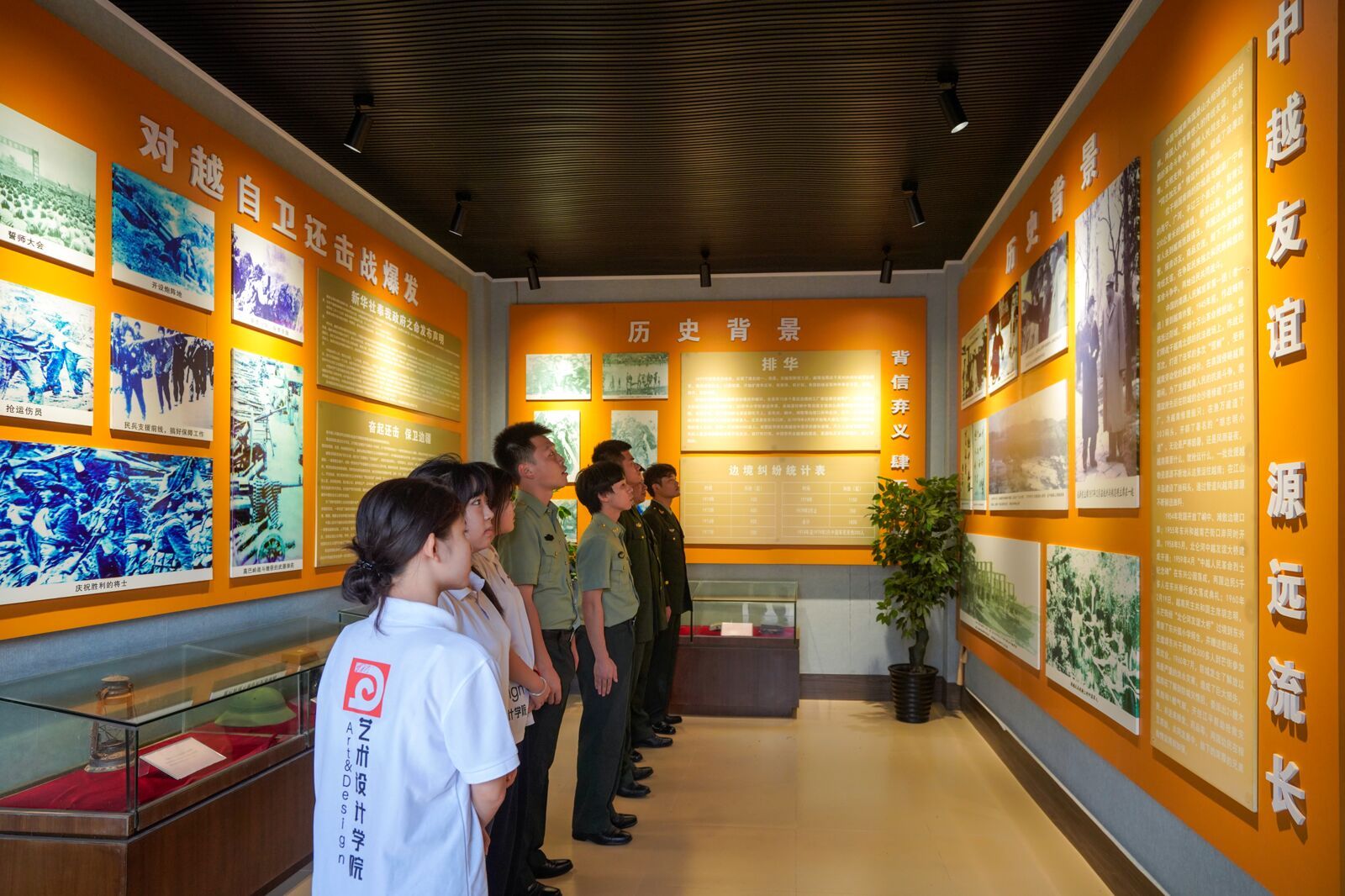 戍边楷模话国防,青年学子心中敬。实践团步行40分钟抵达尖峰岭哨所,见到了曾5次进京接受表彰的爱国戍边楷模—陆兰军,他一家三代4口人为国守疆45年的事迹被广泛宣扬。在陆兰军和现任哨长闭正法的介绍下,实践团成员们了解了哨所的历史和重要意义,聆听了戍边光荣事迹,共同回忆了那段峥嵘岁月。大家还穿过工事见到了“猫耳洞”,站在哨岗前观察国境线,真正体验了一次“哨兵”经历。“对面的山峰,就是当时自卫还击战‘高巴岭战役’的主战场。” 陆兰军指着远处的山峰说道。通过走访,实践团成员们深深地感受到,今天祥和安宁的边境线是军民同心、英勇奋战换来的,要倍加珍惜。期间,实践团向哨所赠送了象征和平与友谊的幸福之树。