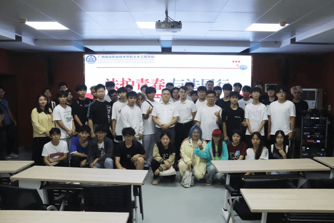 广西建院11月6日讯(土木工程学院 文/石明成 图/张伟 赵子丞)为加强学生法治素养与法治意识,11月1日,土木工程学院在5教906会议室开展了大学生法律知识普及与风险防范主题讲座,特邀广西华司律师事务所谭富松律师为主讲嘉宾,共110名学生参加本次讲座。讲座由郑敏琦老师主持。