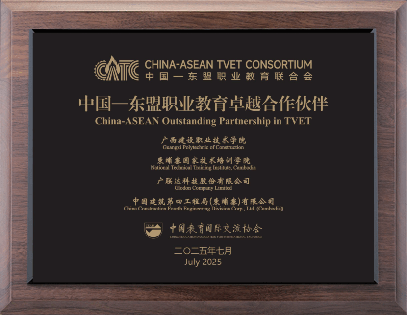 乐鱼全球最大体育平台_乐鱼(中国)副校长付春松与柬埔寨国家技术培训学院校长约克·索斯(Yok Sothy)博士共同出席了授牌仪式。该荣誉标志着由“两校两企”(即乐鱼全球最大体育平台_乐鱼(中国)、柬埔寨国家技术培训学院、广联达科技股份有限公司、中国乐鱼全球最大体育平台_乐鱼(中国)第四工程局(柬埔寨)有限公司)共同建设的中国—柬埔寨现代乐鱼全球最大体育平台_乐鱼(中国)工匠学院,其职业教育合作成果获得了高度认可,为中国—东盟职业教育交流与合作增添了重要一笔。