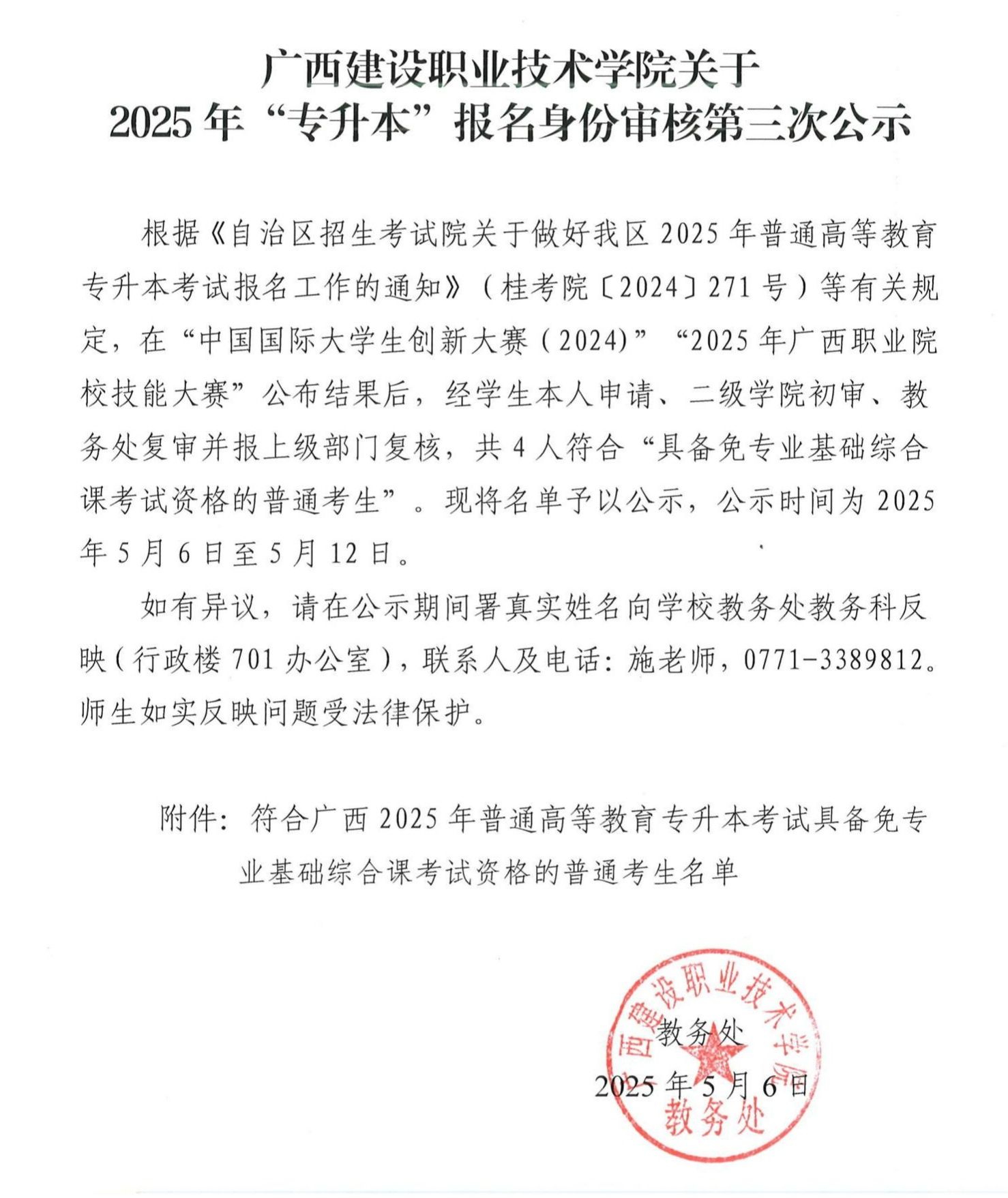 乐鱼全球最大体育平台_乐鱼(中国)关于2025年“专升本”报名身份审核第三次公示