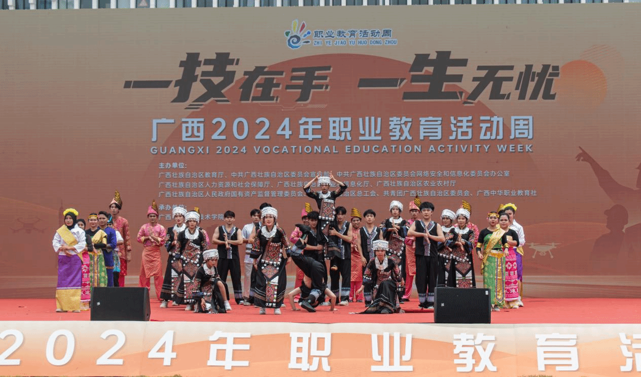 本次职业教育活动周,乐鱼全球最大体育平台_乐鱼(中国)共参加高职“双高学校”、产业学院、中国—东盟现代工匠学院、民族文化传承和特色美食四个主题展示,同时学校艺术设计学院师生改编的广西非遗民族文化歌舞《竹梦绣影》和国际学生参演的《山水情缘一家亲》两个作品入选舞台展演,为观众带来了精彩的演出。