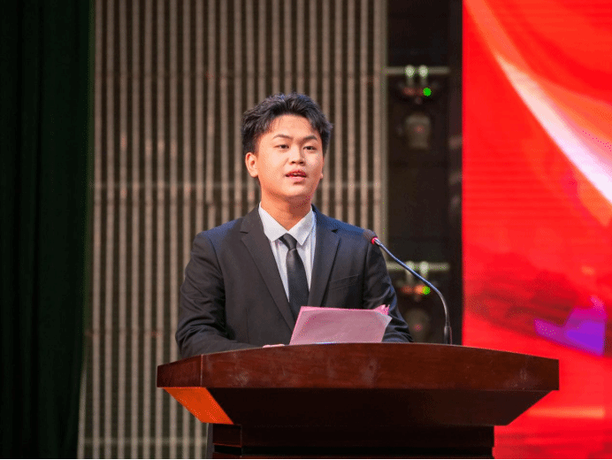 土木工程学院中美2201班伍梓萱作为毕业生代表发言,他深情回顾了在建院的温暖成长历程——从初入校园的懵懂,到疫情期间的线上坚守,再到志愿服务与专业技能竞赛中的淬炼与荣光。他动情地说:“让我们带着在建院学到的知识和勇气,把个人理想融入国家发展,在新的舞台上发光发热。”