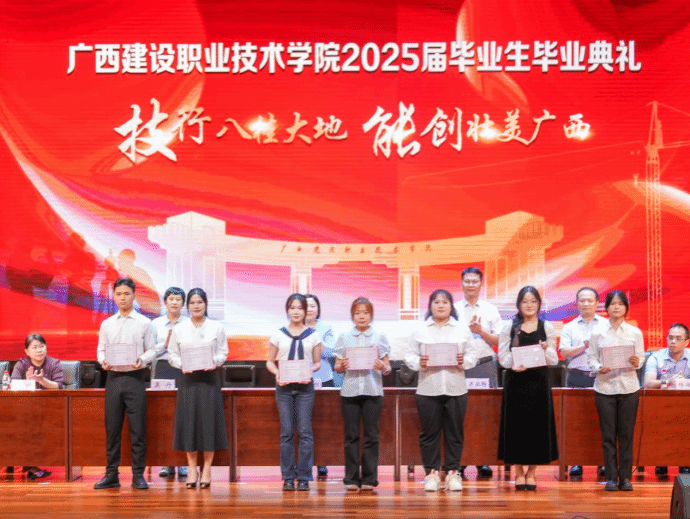 学校党委副书记、校长梁业胜发表了饱含深情的讲话。这位带着对建院深厚感情的“老建院人新校长”,动情地回忆起曾经工作的往事,细数建院67年办学的扎实根基与紧跟国家建设的决心。面对时代的巨浪奔涌与人生选择的十字路口,校长分享了几点感悟:一是希望同学们永葆匠心,追求卓越,做精益求精的“鲁班传人”。二是扎根八桂,服务地方,做壮美广西的“建设先锋”。三是拥抱变革,终身学习,做时代浪潮的“弄潮儿”。四是厚德筑能,诚实守信,做德才兼备的“建院名片”。五是脚踏实地,仰望星空,做奋斗不息的“追梦人”。愿2025届毕业生在建设壮美广西、共圆复兴梦想的伟大征程中,书写无愧于时代、无愧于母校、无愧于青春的华彩篇章。