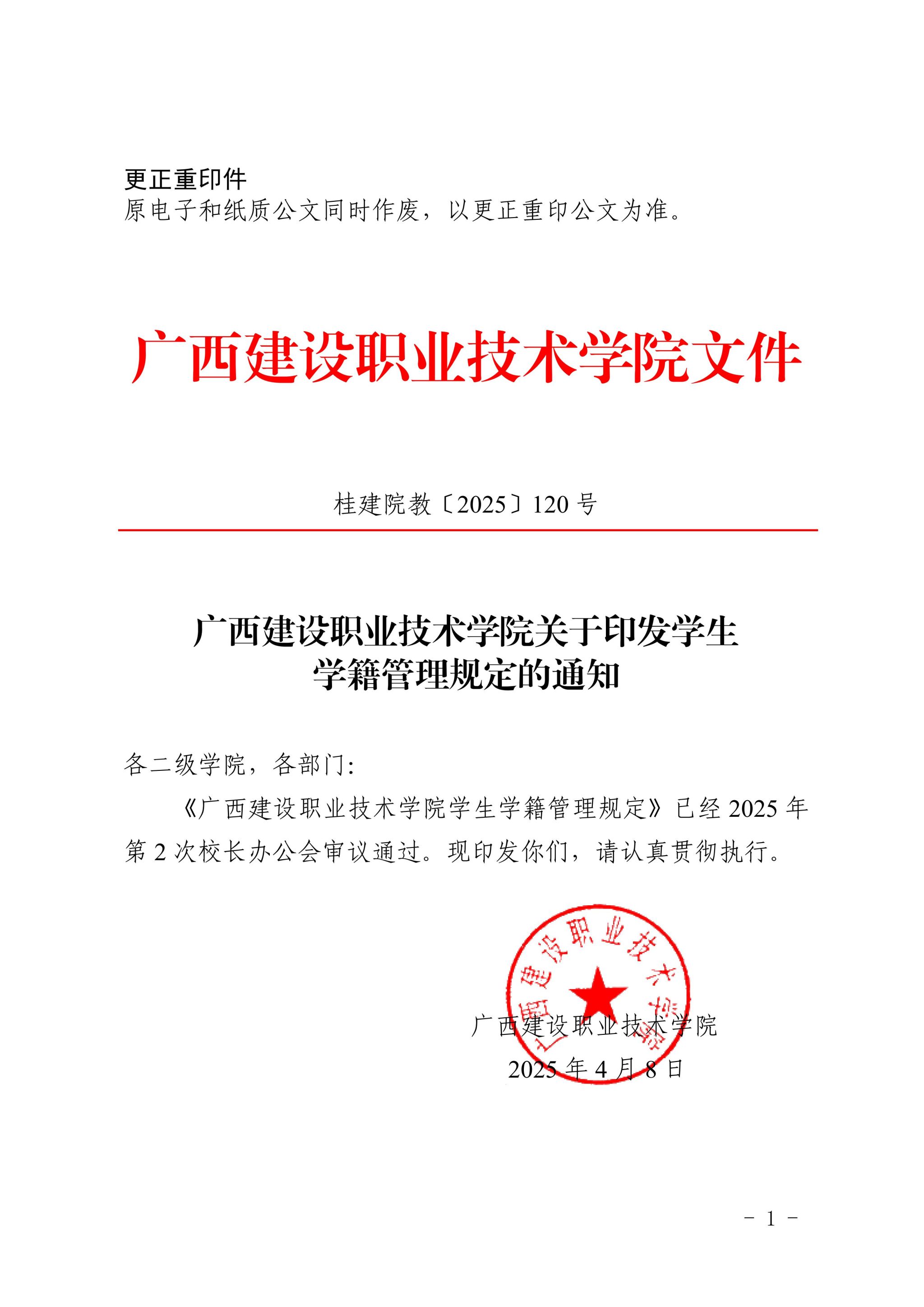 【更正重印件】桂建院教〔2025〕120号乐鱼全球最大体育平台_乐鱼(中国)关于印发学生学籍管理规定的通知.pdf
