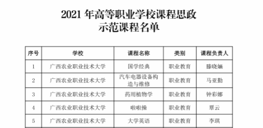 2021年高等职业学校课程思政示范课程