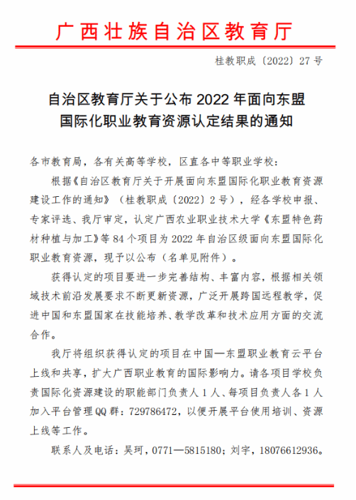2022年面向东盟国际化职业教育资源