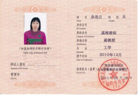 余连月副教授职称证书 | 余连月高级工程师职称证书 |