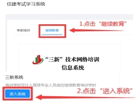 (三)进入系统:在“住建考试学习系统”中选择“继续教育”,再点击“进入系统”;