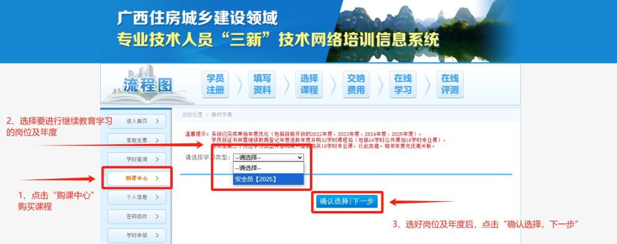 对取得多个岗位合格证人员,学员按证书所需继续教育登记年度选取年度并购32学时课程后(包括16学时公共课加16学时专业课),该年第二个度岗位学习类型开始购课只需要购买16学时专业课,以此类推。相邻年度无优惠关联。