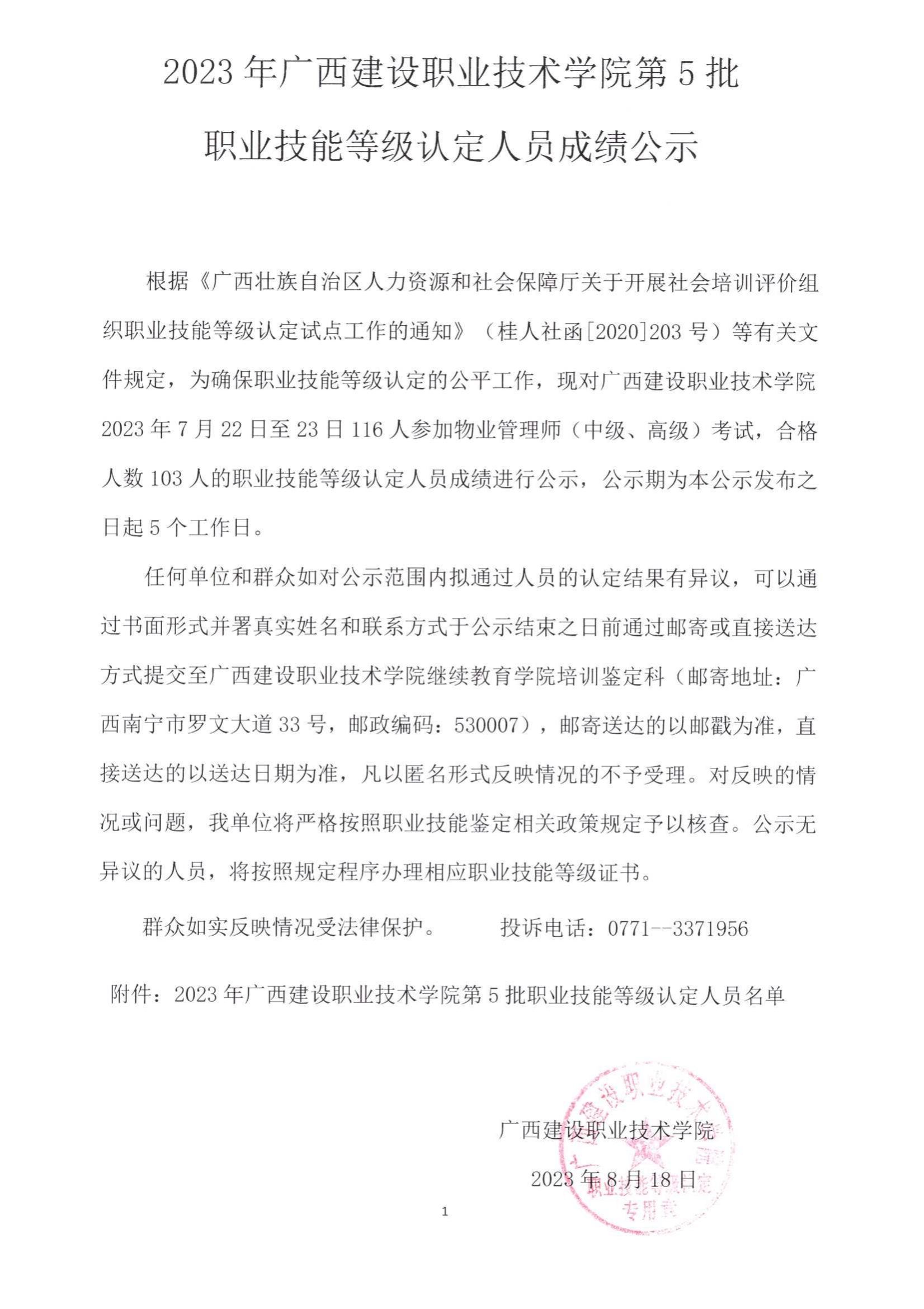 培训信息 当前位置: 首页 >> 培训信息 >> 正文 2023年乐鱼全球最大体育平台_乐鱼(中国)第5批职业技能等级认定人员成绩公示 发布日期:2023-08-21 点击: 附件【2023年乐鱼全球最大体育平台_乐鱼(中国)第5批职业技能等级认定人员成绩公示.pdf】已下载次
