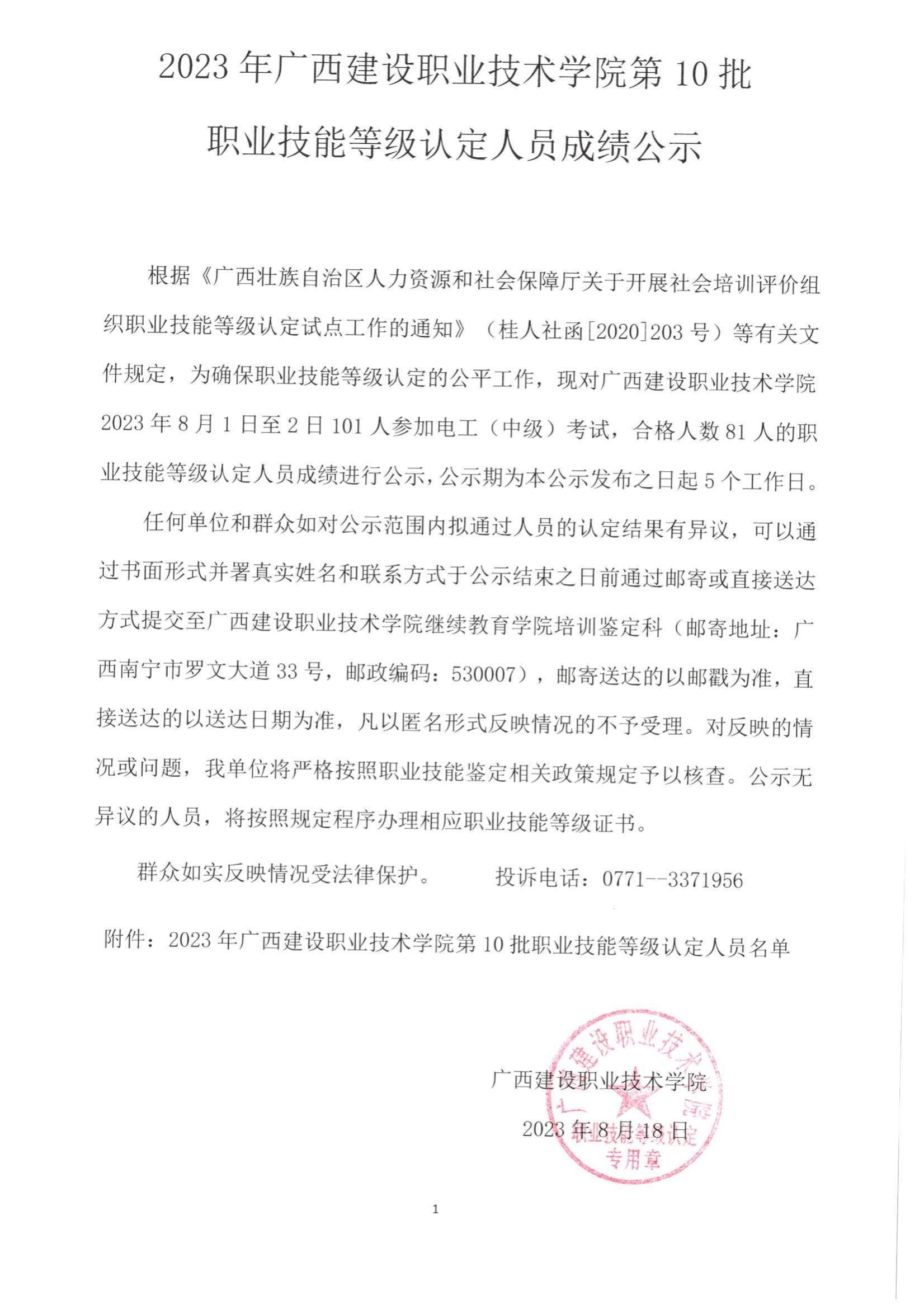培训信息 当前位置: 首页 >> 培训信息 >> 正文 2023年乐鱼全球最大体育平台_乐鱼(中国)第10批职业技能等级认定人员成绩公示 发布日期:2023-08-21 点击: 附件【2023年乐鱼全球最大体育平台_乐鱼(中国)第10批职业技能等级认定人员成绩公示.pdf】已下载次