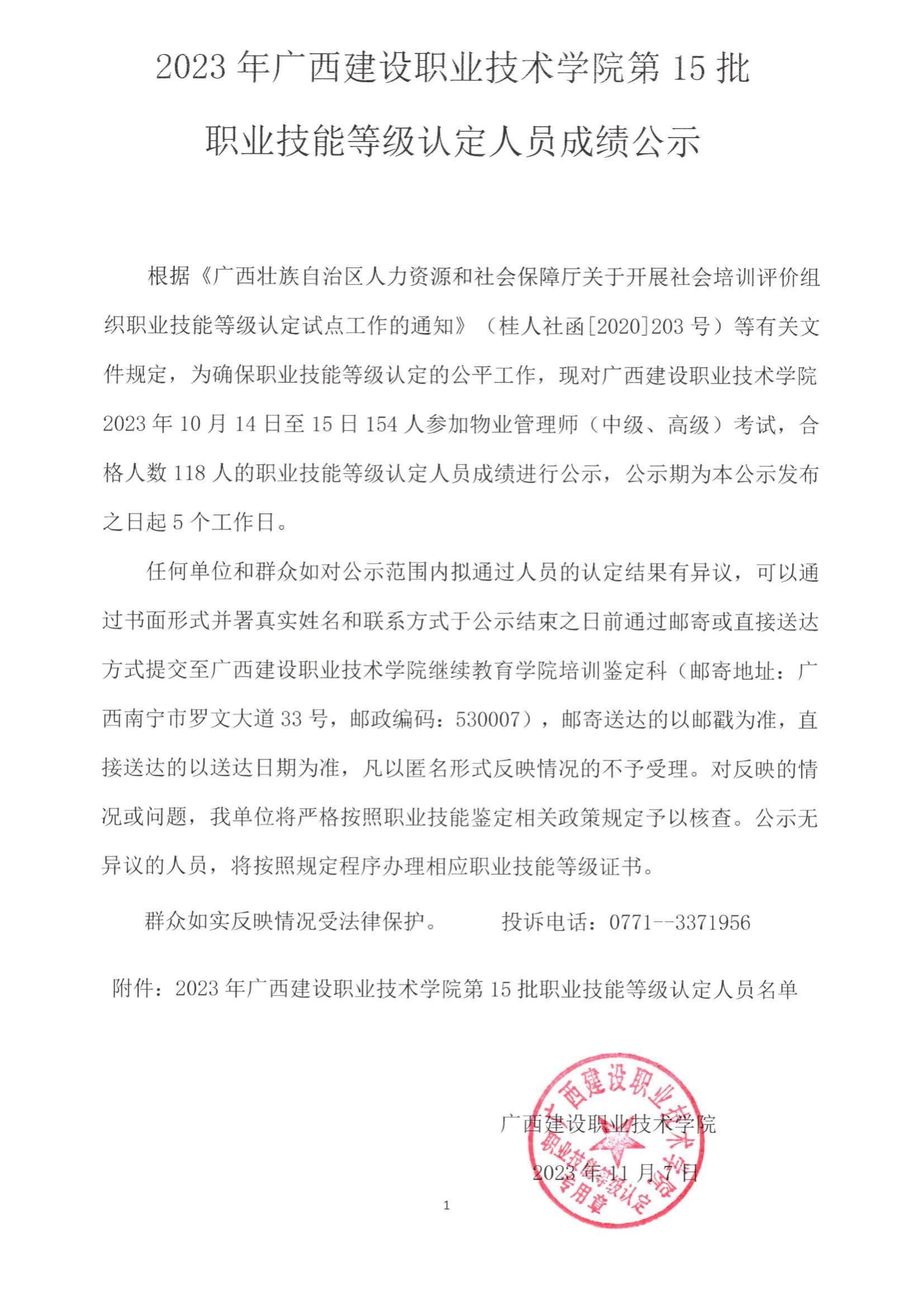 培训信息 当前位置: 首页 >> 培训信息 >> 正文 2023年乐鱼全球最大体育平台_乐鱼(中国)第15批职业技能等级认定人员成绩公示 发布日期:2023-11-08 点击: 附件【2023年乐鱼全球最大体育平台_乐鱼(中国)第15批职业技能等级认定人员成绩公示.pdf】已下载次