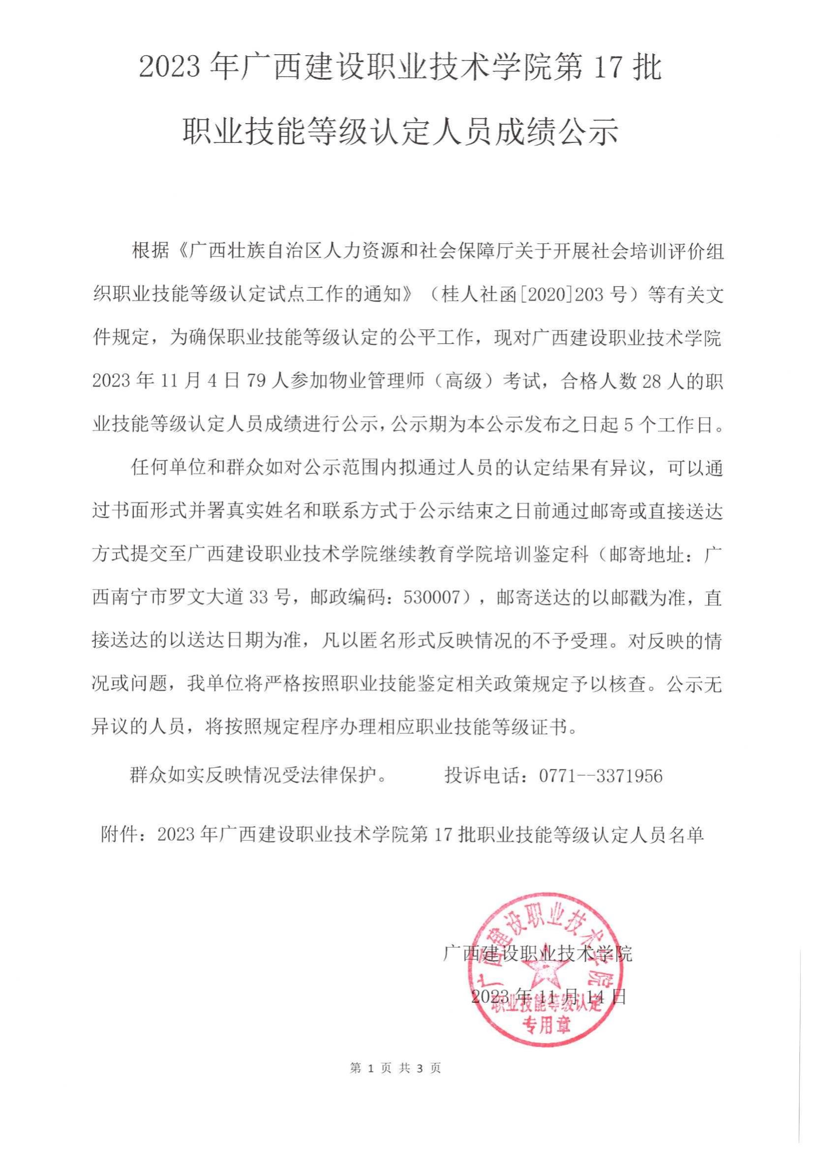 培训信息 当前位置: 首页 >> 培训信息 >> 正文 2023年乐鱼全球最大体育平台_乐鱼(中国)第17批职业技能等级认定人员成绩公示 发布日期:2023-11-16 点击: 附件【2023年乐鱼全球最大体育平台_乐鱼(中国)第17批职业技能等级认定人员成绩公示.pdf】已下载次