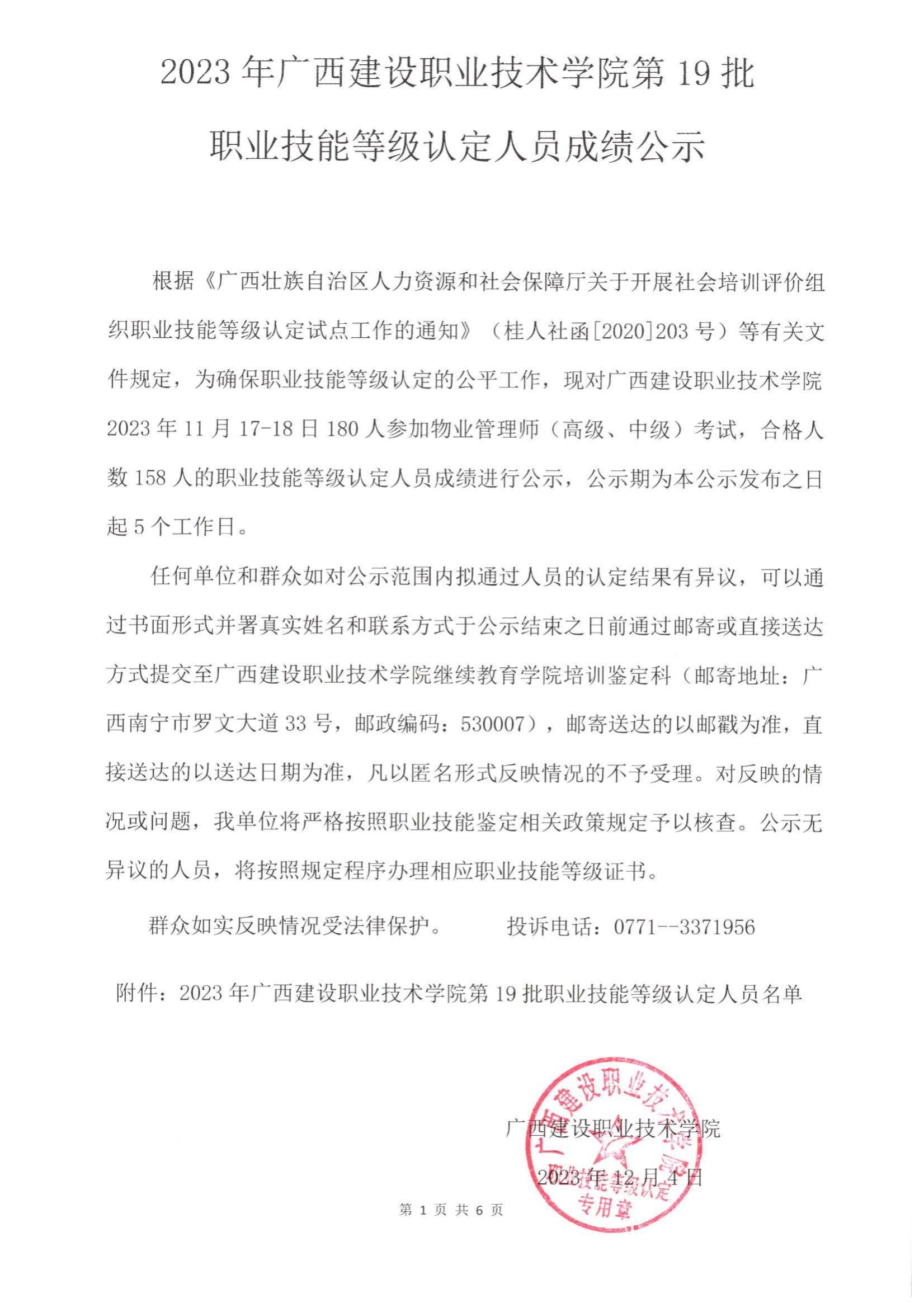 培训信息 当前位置: 首页 >> 培训信息 >> 正文 2023年乐鱼全球最大体育平台_乐鱼(中国)第19批职业技能等级认定人员成绩公示 发布日期:2023-12-05 点击: 附件【2023年乐鱼全球最大体育平台_乐鱼(中国)第19批职业技能等级认定人员成绩公示.pdf】已下载次