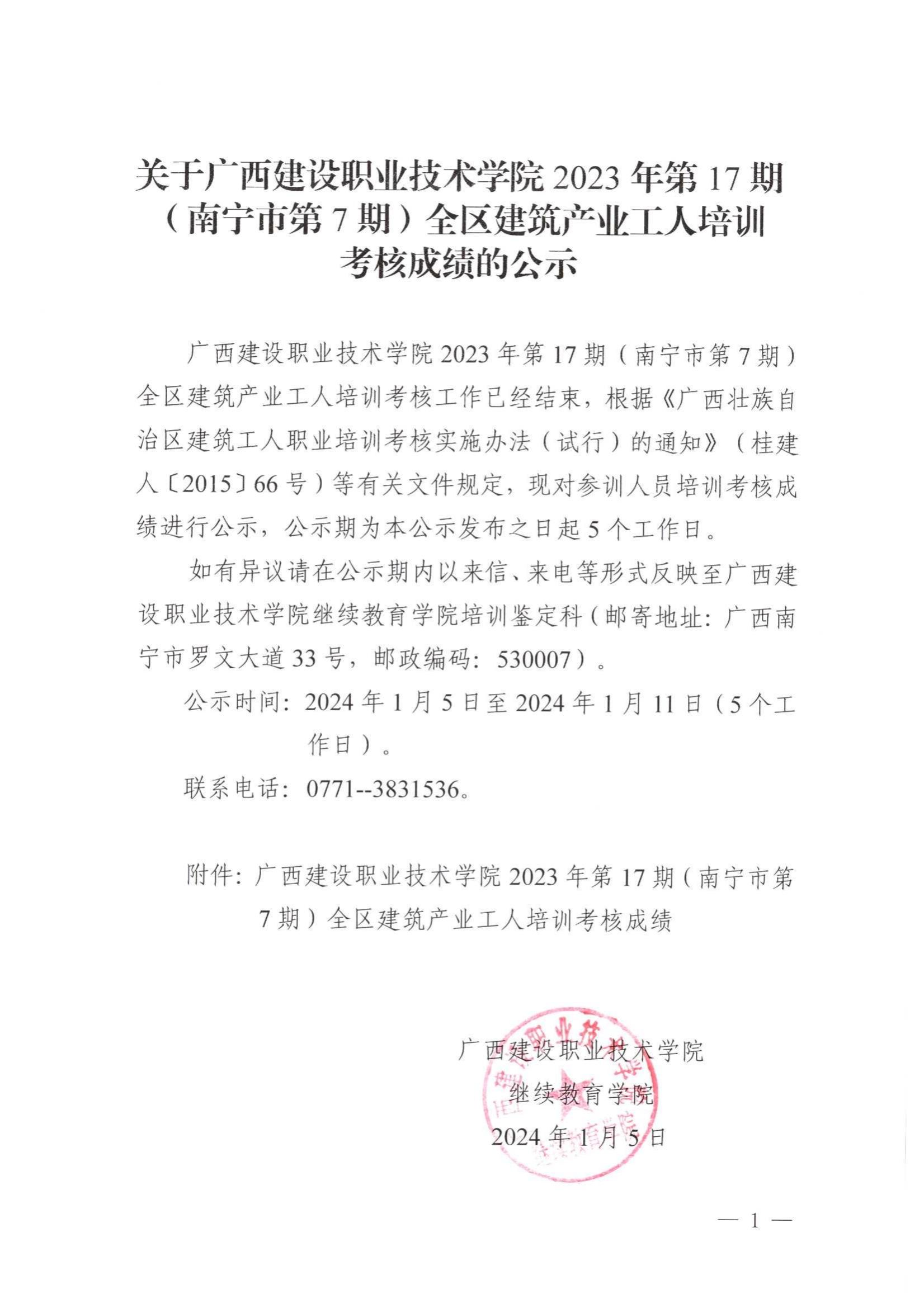 培训信息 当前位置: 首页 >> 培训信息 >> 正文 关于乐鱼全球最大体育平台_乐鱼(中国)2023年全区乐鱼全球最大体育平台_乐鱼(中国)产业工人第17期(南宁市第7期)培训考核成绩的公示 发布日期:2024-01-05 点击: 附件【关于乐鱼全球最大体育平台_乐鱼(中国)2023年全区乐鱼全球最大体育平台_乐鱼(中国)产业工人第17期(南宁市第7期)培训考核成绩的公示 .pdf】已下载次