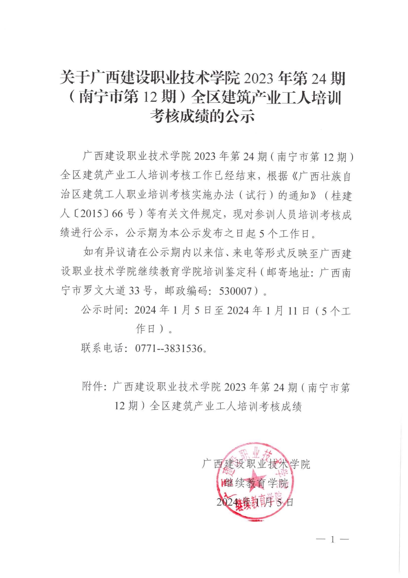 培训信息 当前位置: 首页 >> 培训信息 >> 正文 关于乐鱼全球最大体育平台_乐鱼(中国)2023年全区乐鱼全球最大体育平台_乐鱼(中国)产业工人第24期(南宁市第12期)培训考核成绩的公示 发布日期:2024-01-05 点击: 附件【关于乐鱼全球最大体育平台_乐鱼(中国)2023年全区乐鱼全球最大体育平台_乐鱼(中国)产业工人第24期(南宁市第12期)培训考核成绩的公示 .pdf】已下载次