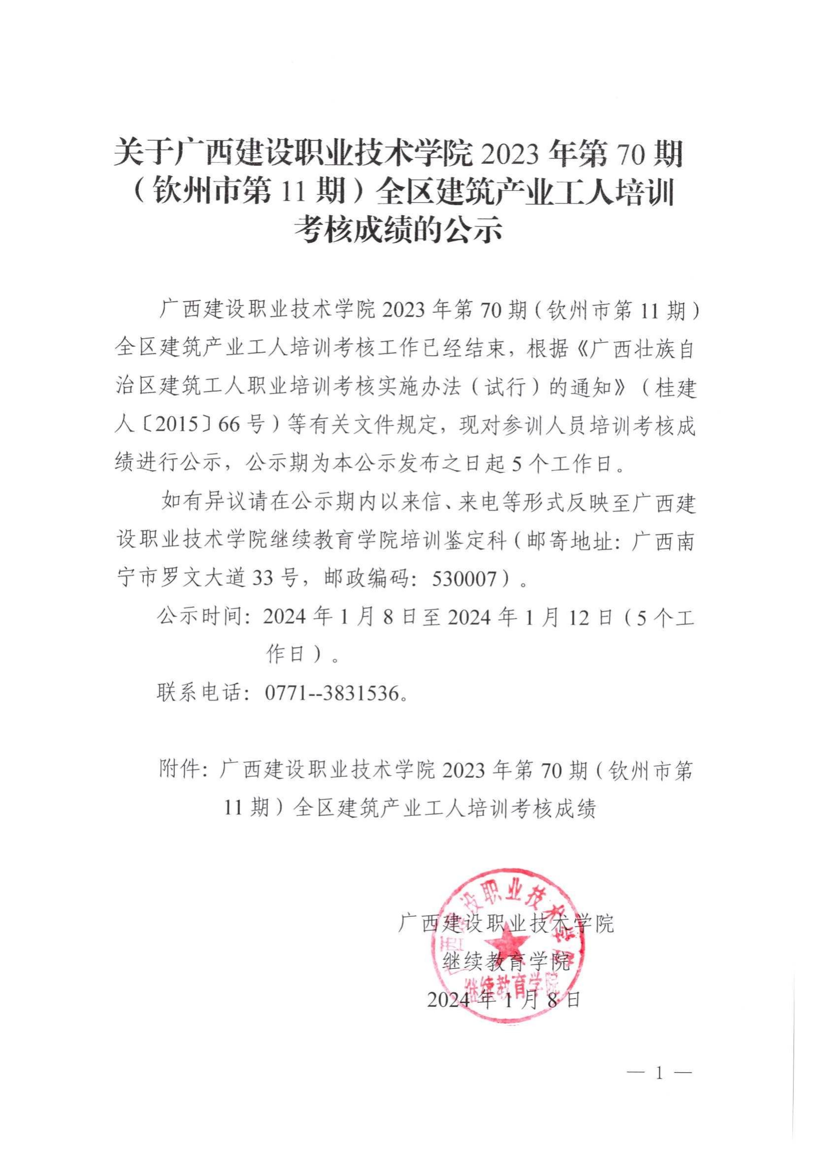 培训信息 当前位置: 首页 >> 培训信息 >> 正文 关于乐鱼全球最大体育平台_乐鱼(中国)2023年全区乐鱼全球最大体育平台_乐鱼(中国)产业工人第70期(钦州市第11期)培训考核成绩的公示 发布日期:2024-01-08 点击: 附件【关于乐鱼全球最大体育平台_乐鱼(中国)2023年全区乐鱼全球最大体育平台_乐鱼(中国)产业工人第70期(钦州市第11期)培训考核成绩的公示.pdf】已下载次