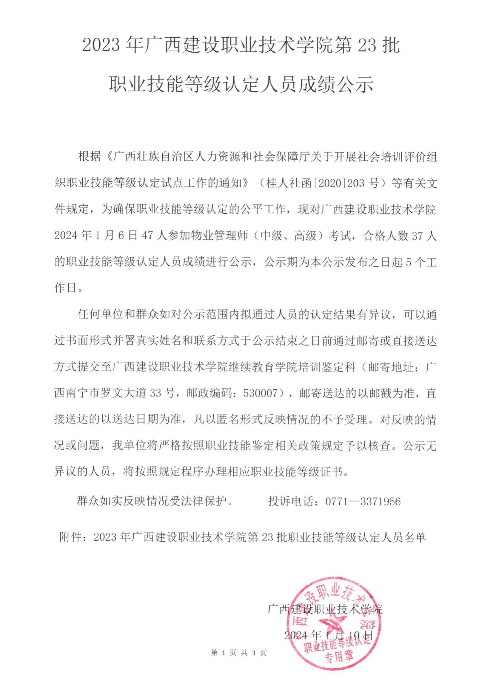 培训信息 当前位置: 首页 >> 培训信息 >> 正文 2023年乐鱼全球最大体育平台_乐鱼(中国)第23批职业技能等级认定人员成绩公示 发布日期:2024-01-10 点击: 附件【2023年乐鱼全球最大体育平台_乐鱼(中国)第23批职业技能等级认定人员成绩公示.pdf】已下载次
