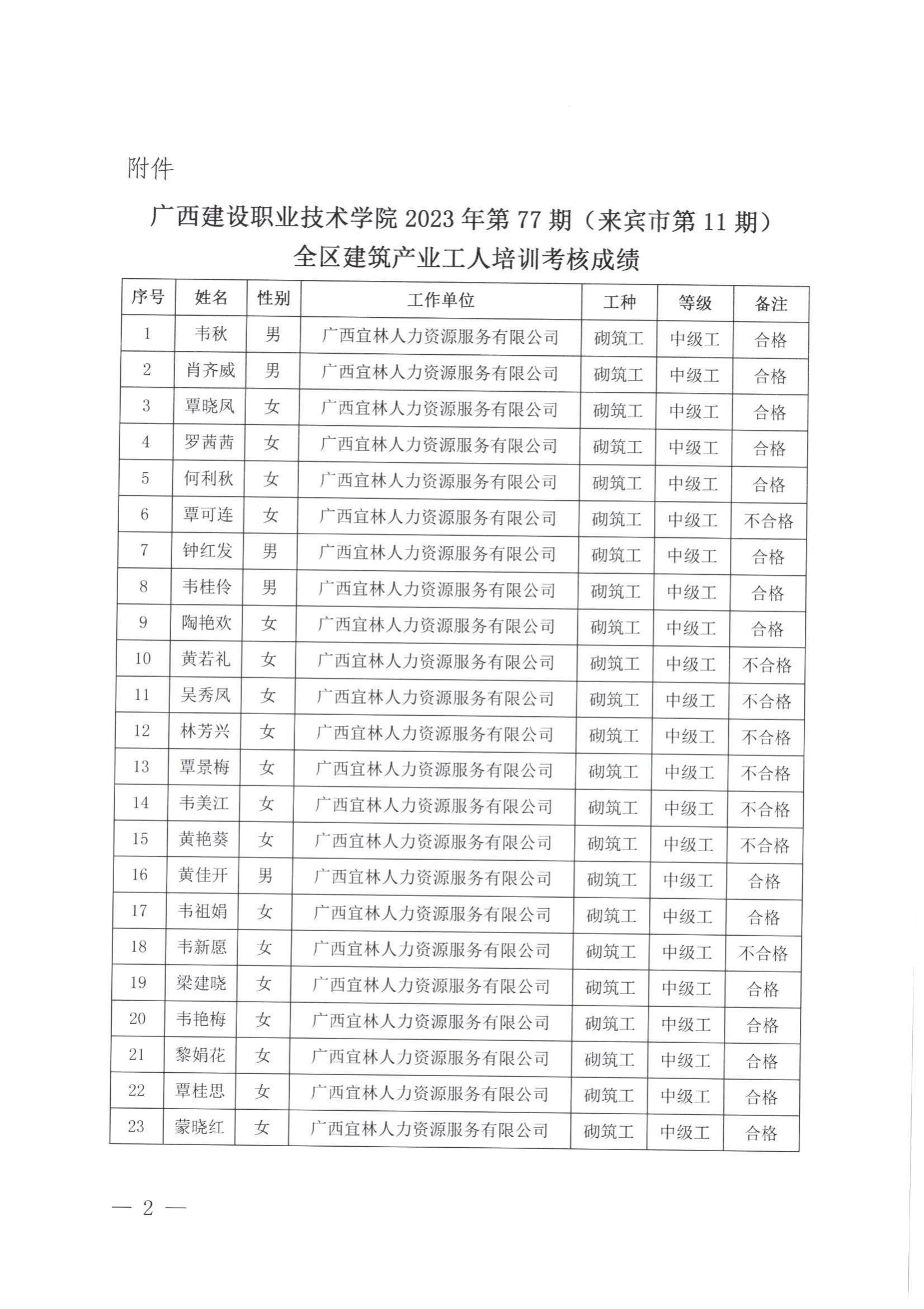 培训信息 当前位置: 首页 >> 培训信息 >> 正文 关于乐鱼全球最大体育平台_乐鱼(中国)2023年全区乐鱼全球最大体育平台_乐鱼(中国)产业工人第77期(来宾市第11期)培训考核成绩的公示 发布日期:2024-01-12 点击: 附件【关于乐鱼全球最大体育平台_乐鱼(中国)2023年全区乐鱼全球最大体育平台_乐鱼(中国)产业工人第77期(来宾市第11期)培训考核成绩的公示.pdf】已下载次