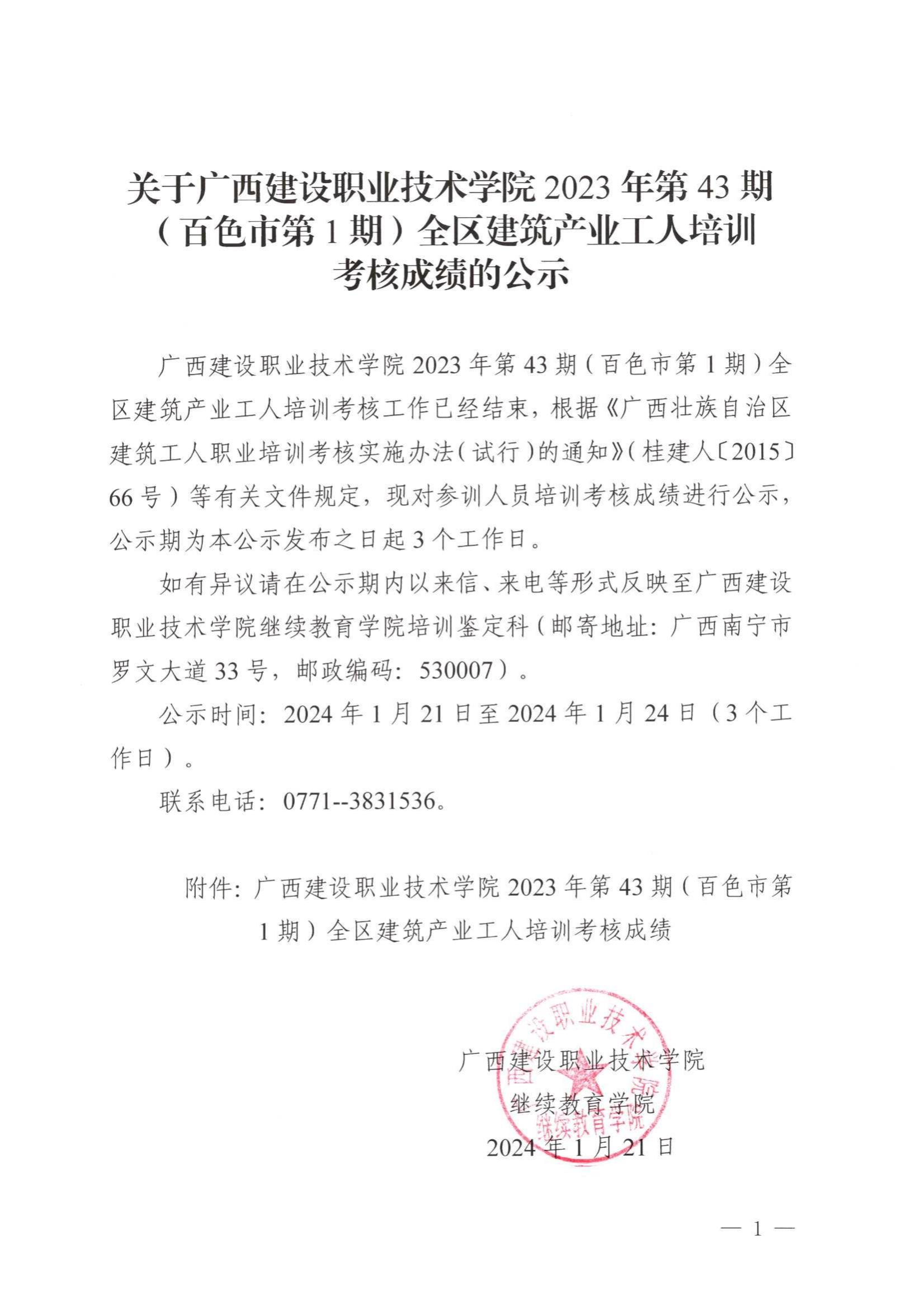 培训信息 当前位置: 首页 >> 培训信息 >> 正文 关于乐鱼全球最大体育平台_乐鱼(中国)2023年全区乐鱼全球最大体育平台_乐鱼(中国)产业工人第43期(百色市第1期)培训考核成绩的公示 发布日期:2024-01-20 点击: 附件【关于乐鱼全球最大体育平台_乐鱼(中国)2023年全区乐鱼全球最大体育平台_乐鱼(中国)产业工人第43期(百色市第1期)培训考核成绩的公示.pdf】已下载次