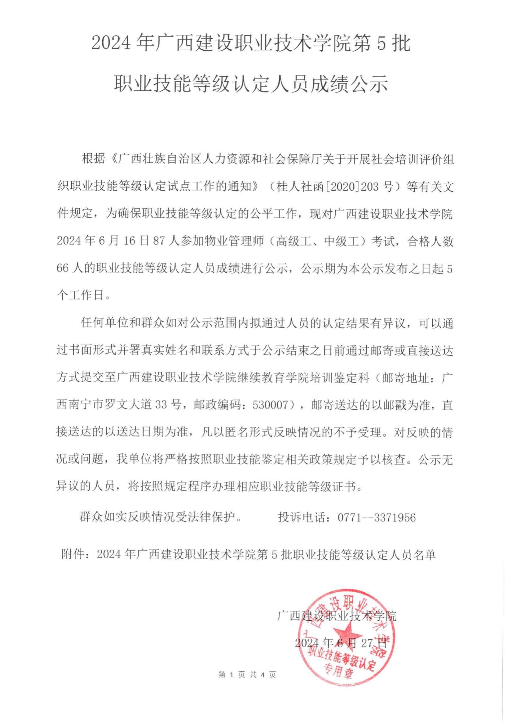 培训信息 当前位置: 首页 >> 培训信息 >> 正文 2024年乐鱼全球最大体育平台_乐鱼(中国)第5批职业技能等级认定人员成绩公示 发布日期:2024-06-27 点击: 附件【2024年乐鱼全球最大体育平台_乐鱼(中国)第5批职业技能等级认定人员成绩公示.pdf】已下载次