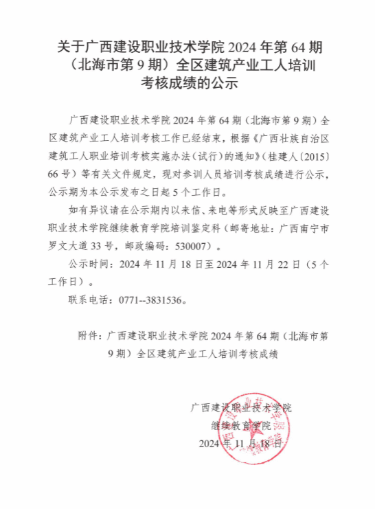 培训信息 当前位置: 首页 >> 培训信息 >> 正文 关于乐鱼全球最大体育平台_乐鱼(中国)2024年全区乐鱼全球最大体育平台_乐鱼(中国)产业工人第64期(北海市市第9期)培训考核成绩的公示 发布日期:2024-11-18 点击: 附件【关于乐鱼全球最大体育平台_乐鱼(中国)2024年全区乐鱼全球最大体育平台_乐鱼(中国)产业工人第64期(北海市市第9期)培训考核成绩的公示.pdf】已下载次