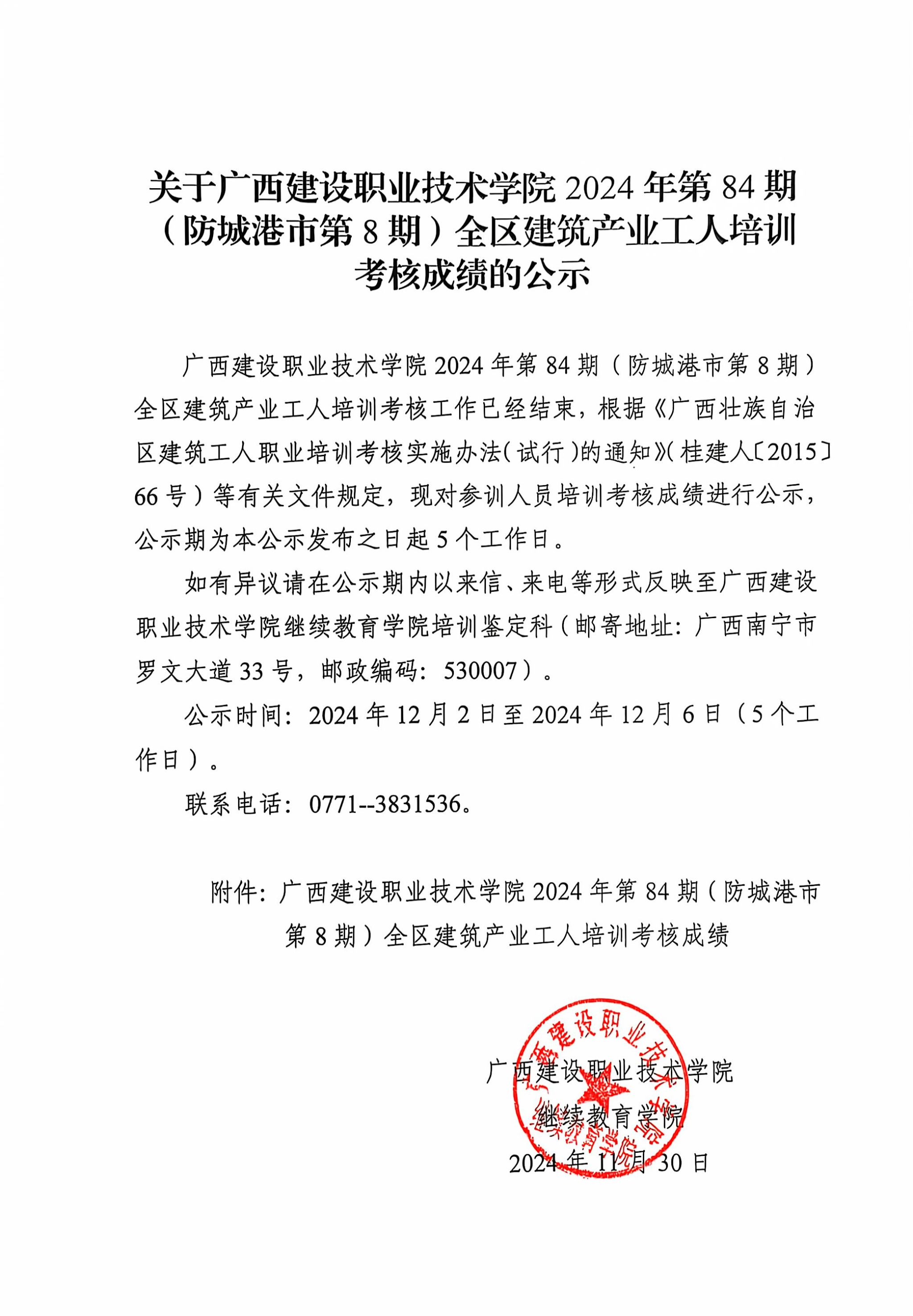 培训信息 当前位置: 首页 >> 培训信息 >> 正文 关于乐鱼全球最大体育平台_乐鱼(中国)2024年全区乐鱼全球最大体育平台_乐鱼(中国)产业工人第84期(防城港市第8期)培训考核成绩的公示 发布日期:2024-11-30 点击: 附件【关于乐鱼全球最大体育平台_乐鱼(中国)2024年全区乐鱼全球最大体育平台_乐鱼(中国)产业工人第84期(防城港市第8期)培训考核成绩的公示.pdf】已下载次
