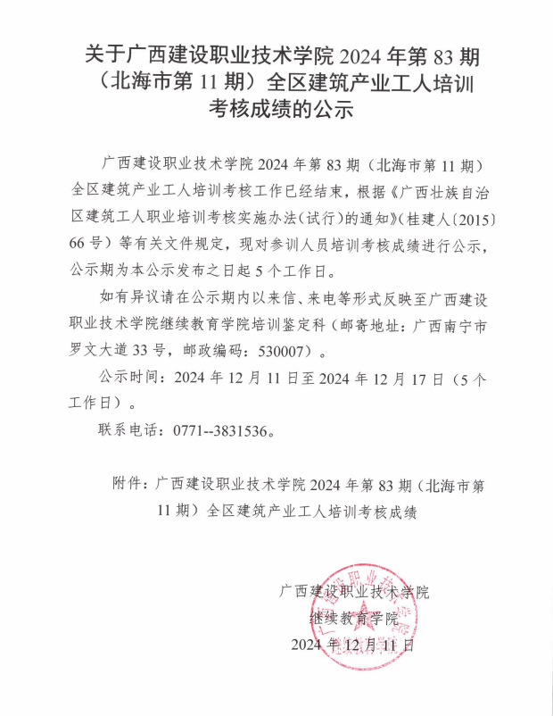 培训信息 当前位置: 首页 >> 培训信息 >> 正文 关于乐鱼全球最大体育平台_乐鱼(中国)2024年全区乐鱼全球最大体育平台_乐鱼(中国)产业工人第83期(北海市第11期)培训考核成绩的公示 发布日期:2024-12-11 点击: 附件【关于乐鱼全球最大体育平台_乐鱼(中国)2024年全区乐鱼全球最大体育平台_乐鱼(中国)产业工人第83期(北海市第11期)培训考核成绩的公示.pdf】已下载次