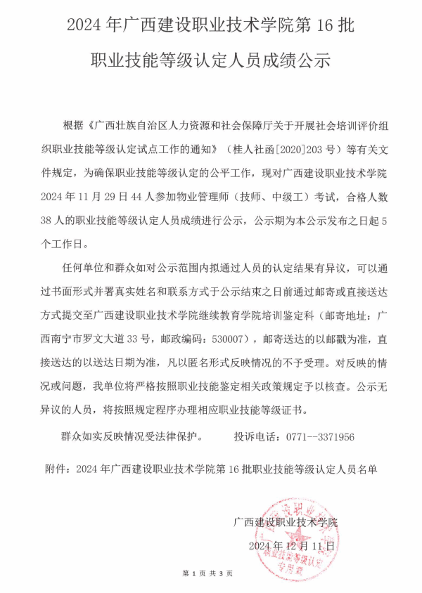 培训信息 当前位置: 首页 >> 培训信息 >> 正文 2024年乐鱼全球最大体育平台_乐鱼(中国)第16批职业技能等级认定人员成绩公示 发布日期:2024-12-12 点击: 附件【2024年乐鱼全球最大体育平台_乐鱼(中国)第16批职业技能等级认定人员成绩公示.pdf】已下载次