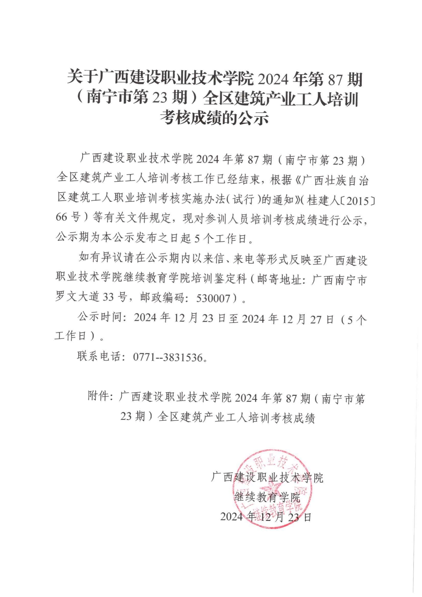 培训信息 当前位置: 首页 >> 培训信息 >> 正文 关于乐鱼全球最大体育平台_乐鱼(中国)2024年第87期(南宁市第23期)全区乐鱼全球最大体育平台_乐鱼(中国)产业工人培训考核成绩的公示 发布日期:2024-12-24 点击: 附件【关于乐鱼全球最大体育平台_乐鱼(中国)2024年第87期(南宁市第23期)全区乐鱼全球最大体育平台_乐鱼(中国)产业工人培训考核成绩的公示.pdf】已下载次