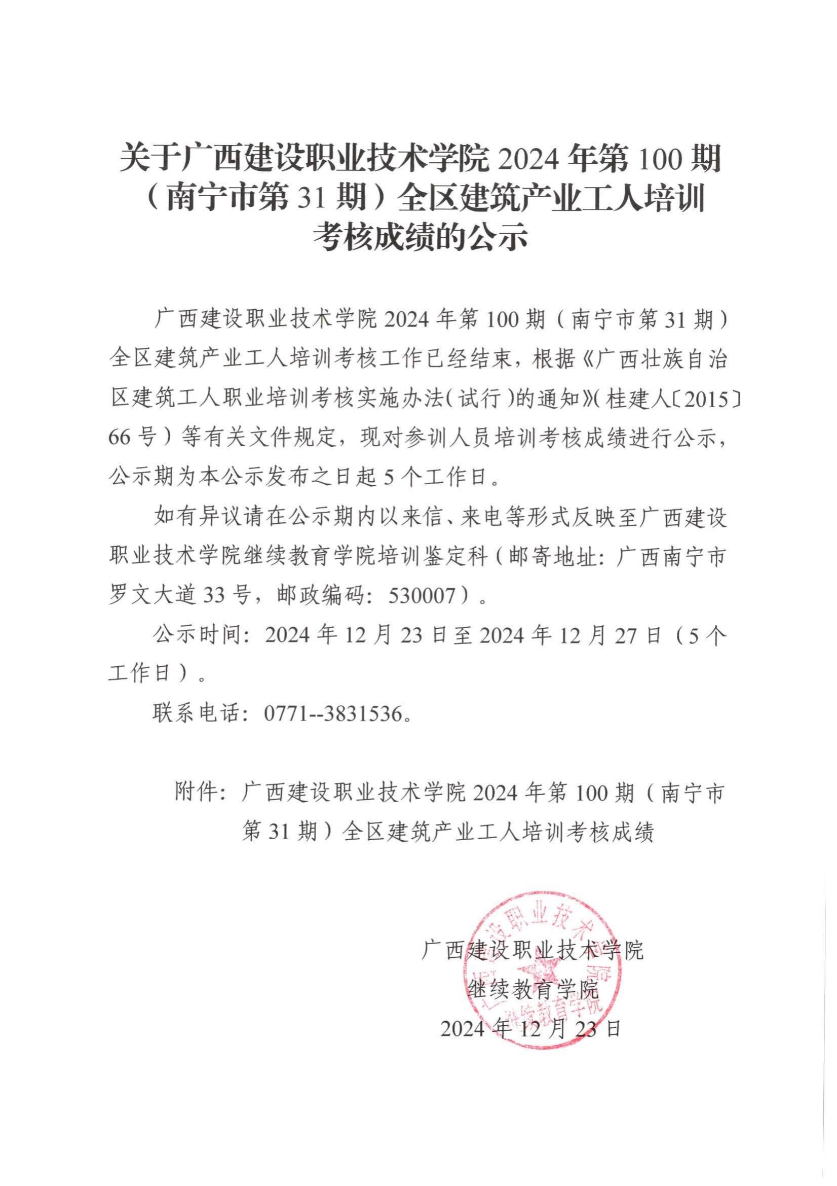培训信息 当前位置: 首页 >> 培训信息 >> 正文 关于乐鱼全球最大体育平台_乐鱼(中国)2024年第100期(南宁市第31期)全区乐鱼全球最大体育平台_乐鱼(中国)产业工人培训考核成绩的公示 发布日期:2024-12-24 点击: 附件【关于乐鱼全球最大体育平台_乐鱼(中国)2024年第100期(南宁市第31期)全区乐鱼全球最大体育平台_乐鱼(中国)产业工人培训考核成绩的公示.pdf】已下载次
