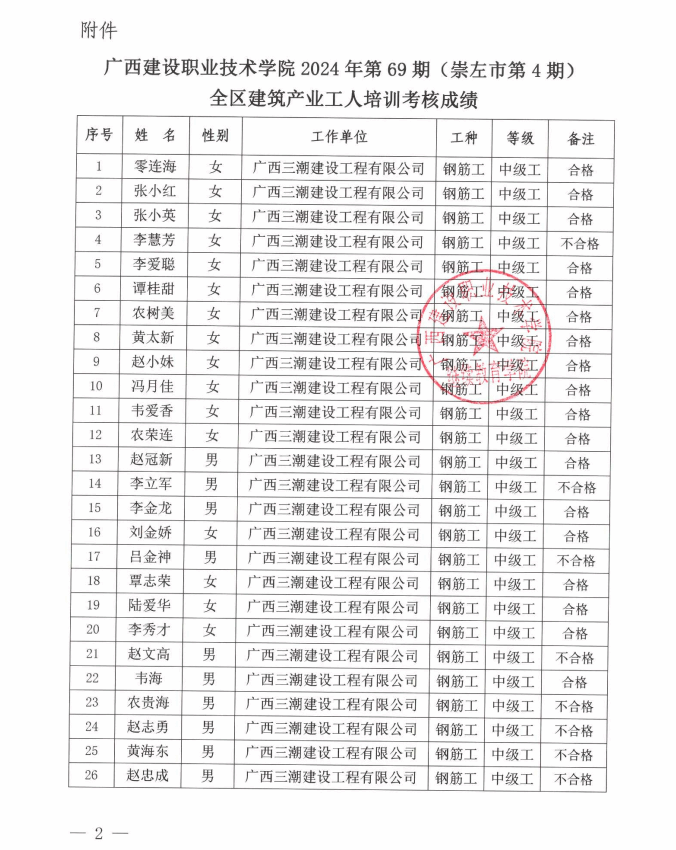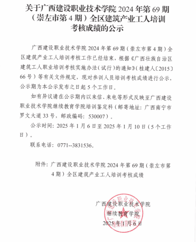 培训信息 当前位置: 首页 >> 培训信息 >> 正文 关于乐鱼全球最大体育平台_乐鱼(中国)2024年全区乐鱼全球最大体育平台_乐鱼(中国)产业工人第69期(崇左市第4期)培训考核成绩的公示 发布日期:2025-01-06 点击: 附件【关于乐鱼全球最大体育平台_乐鱼(中国)2024年全区乐鱼全球最大体育平台_乐鱼(中国)产业工人第69期(崇左市第4期)培训考核成绩的公示.pdf】已下载次