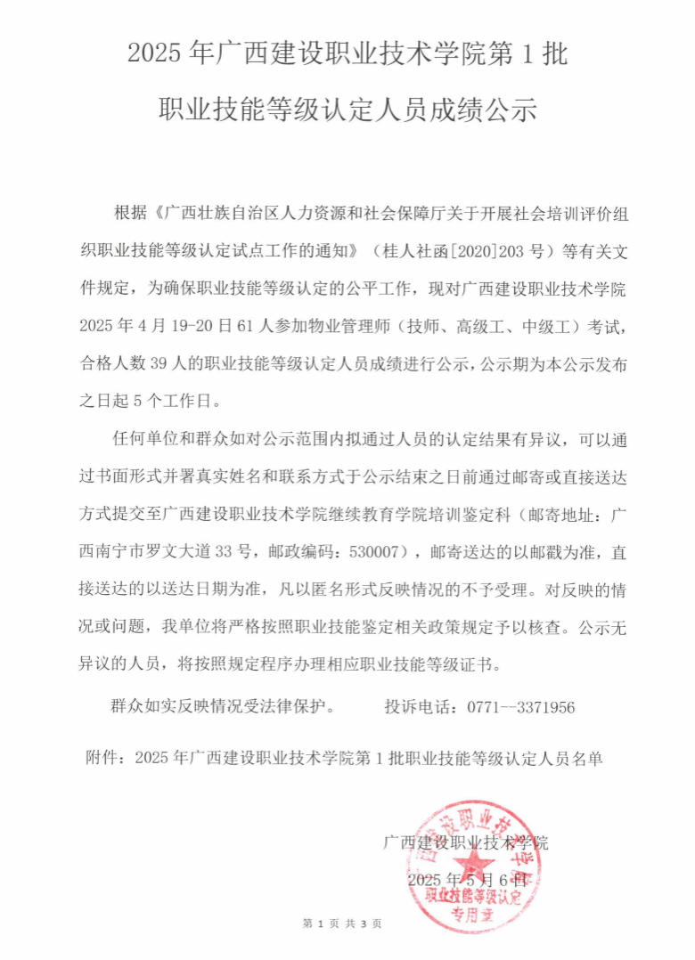 培训信息 当前位置: 首页 >> 培训信息 >> 正文 2025年乐鱼全球最大体育平台_乐鱼(中国)第1批职业技能等级认定人员成绩公示 发布日期:2025-05-07 点击: 附件【2025年乐鱼全球最大体育平台_乐鱼(中国)第1批职业技能等级认定人员成绩公示.pdf】已下载次