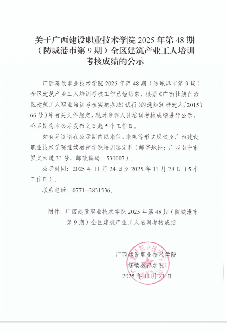 培训信息 当前位置: 首页 >> 培训信息 >> 正文 关于乐鱼全球最大体育平台_乐鱼(中国)2025年全区乐鱼全球最大体育平台_乐鱼(中国)产业工人第48期(防城港市第9期)培训考核成绩的公示 发布日期:2025-11-21 点击: 附件【关于乐鱼全球最大体育平台_乐鱼(中国)2025年全区乐鱼全球最大体育平台_乐鱼(中国)产业工人第48期(防城港市第9期)培训考核成绩的公示.pdf】已下载次
