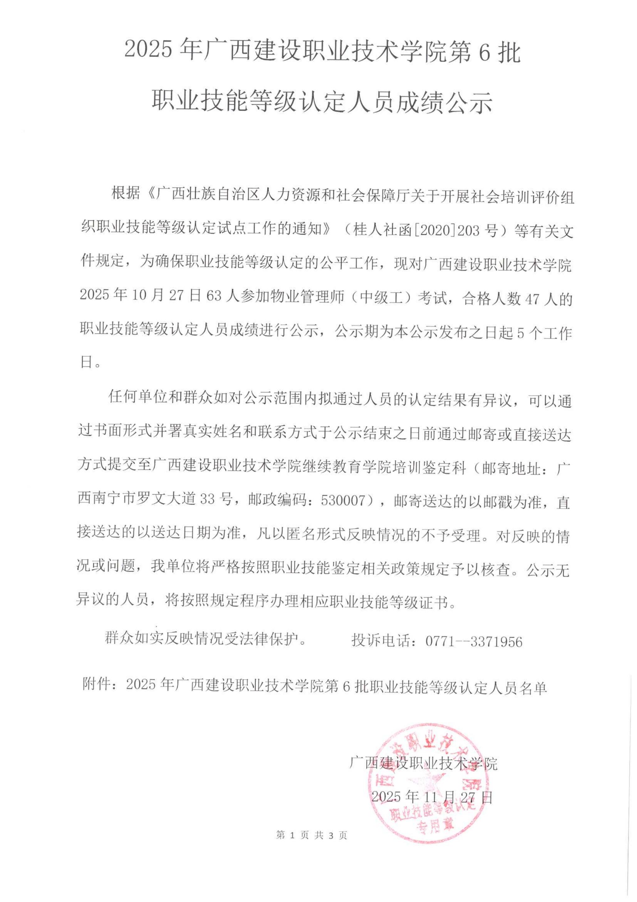 培训信息 当前位置: 首页 >> 培训信息 >> 正文 2025年乐鱼全球最大体育平台_乐鱼(中国)第6批职业技能等级认定人员成绩公示 发布日期:2025-11-27 点击: 附件【2025年乐鱼全球最大体育平台_乐鱼(中国)第6批职业技能等级认定人员成绩公示.pdf】已下载次