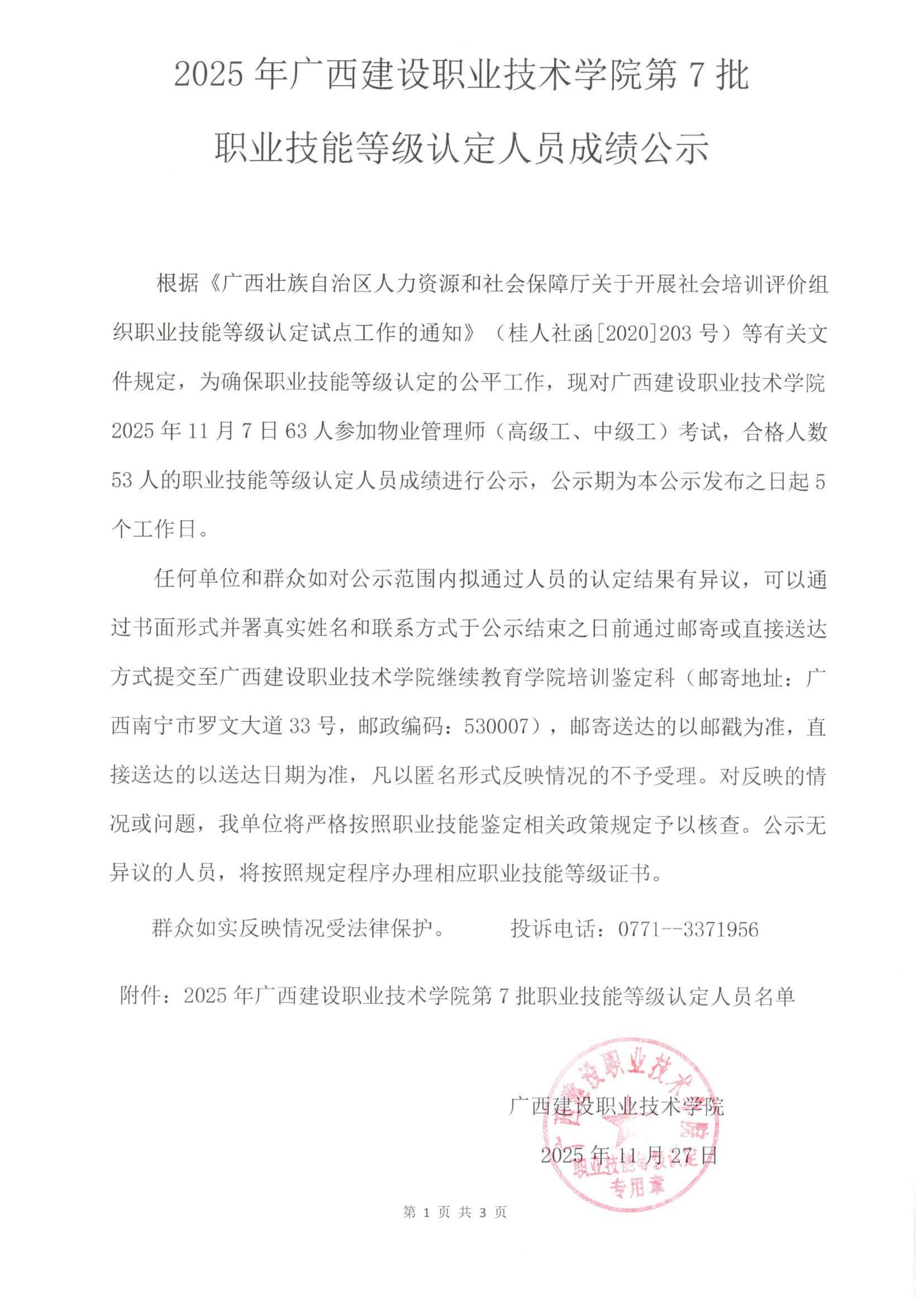 培训信息 当前位置: 首页 >> 培训信息 >> 正文 2025年乐鱼全球最大体育平台_乐鱼(中国)第7批职业技能等级认定人员成绩公示 发布日期:2025-11-27 点击: 附件【2025年乐鱼全球最大体育平台_乐鱼(中国)第7批职业技能等级认定人员成绩公示.pdf】已下载次
