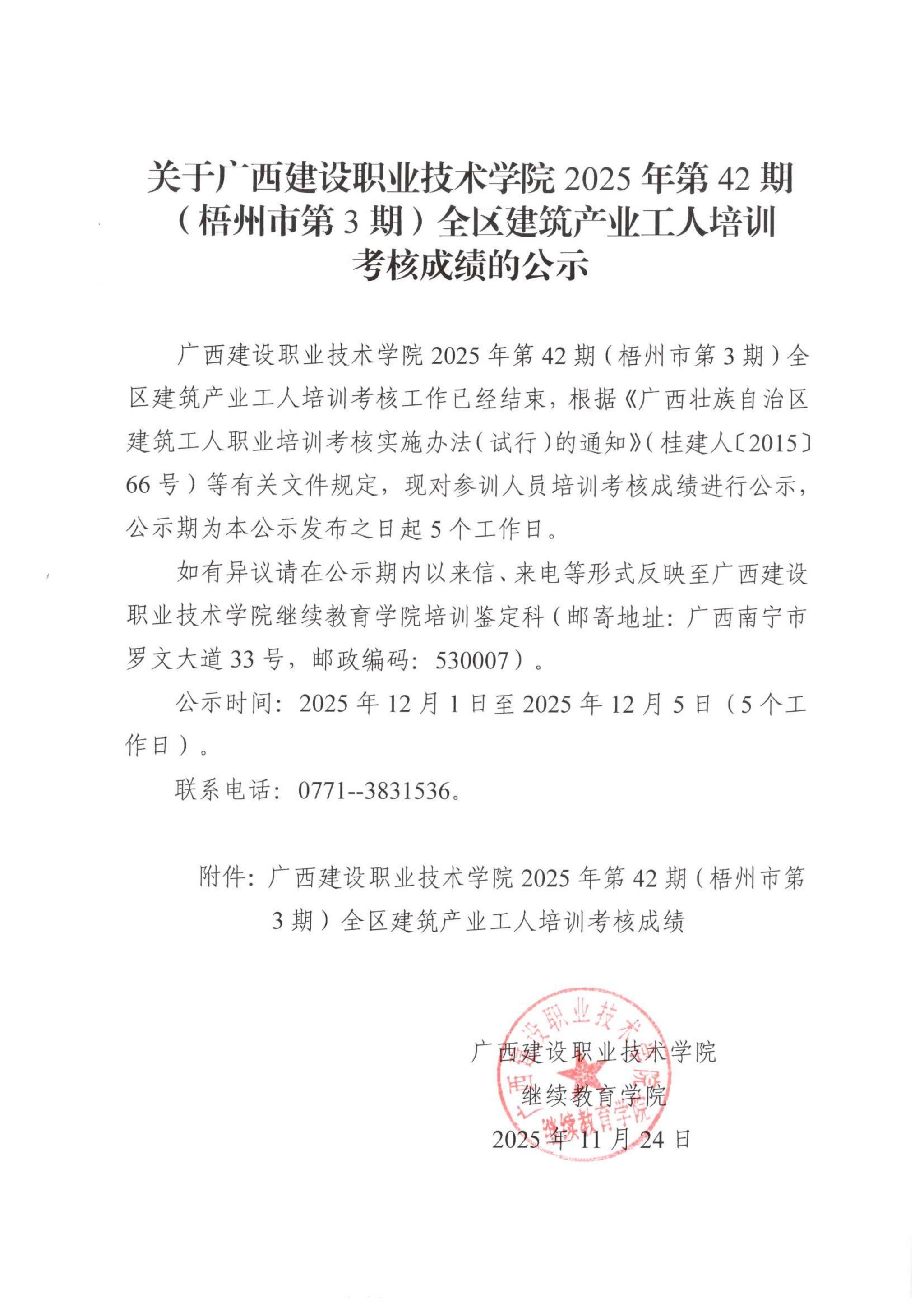 培训信息 当前位置: 首页 >> 培训信息 >> 正文 关于乐鱼全球最大体育平台_乐鱼(中国)2025年全区乐鱼全球最大体育平台_乐鱼(中国)产业工人第42期(梧州市第3期)培训考核成绩的公示 发布日期:2025-12-01 点击: 附件【关于乐鱼全球最大体育平台_乐鱼(中国)2025年全区乐鱼全球最大体育平台_乐鱼(中国)产业工人第42期(梧州市第3期)培训考核成绩的公示.pdf】已下载次